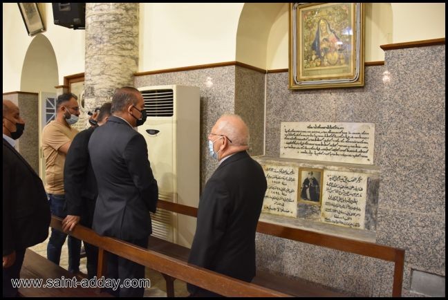 وقد اطلع معاليه على معالم الكنيسة وجمالها المعماري وامر بأكساء الشارع المؤدي اليها تشجيعا لزيارة هذه الكنيسة الاثرية. ثم زاروا بناية البطريركية الجديدة الواقعة في الزيونة وكنيسة مار كوركيس في بغداد الجديدة.