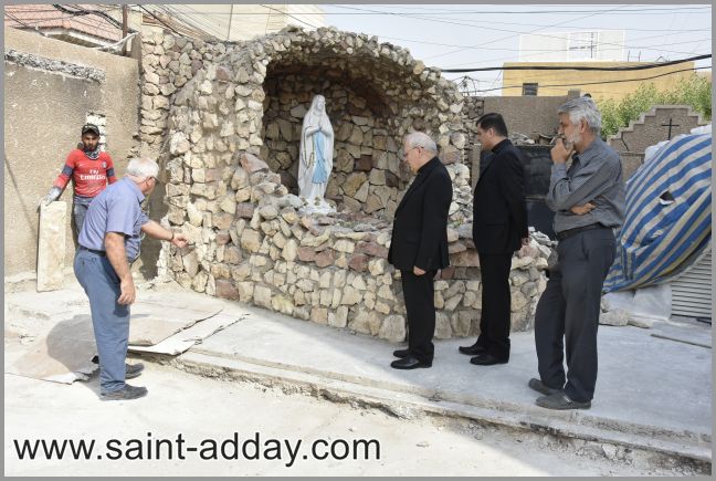 تفقد غبطة ابينا البطريرك مار لويس روفائيل ساكو برفقة معاونه سيادة المطران مار باسيليوس يلدو، صباح يوم الخميس 26 تشرين الاول 2017 كنيسة مار يوسف للاطلاع على سير العمل والترميمات اللازمة للكاتدرائية حيث التقى بالمهندس جنان خدر والفنان بسام صبري واعطى لهما بعض الملاحظات والتوجيهات للمحافظة على طابع الكنيسة وبعد ذلك توجه الى كنيسة سلطانة الوردية.