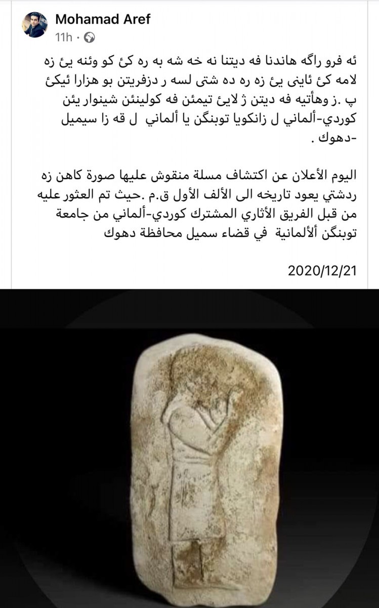 اكد الاستاذ الدكتور في كلية الآثار – جامعة الموصل عامر الجُمَيلي ان القطعة الاثرية التي عثر عليها في سميل تعود للعصر الآشوري الحديث وليس لها علاقة بالديانة الزرادشتية ويدعو لإبعاد الآثار والتاريخ عن الأدلجة والتعريب والتكريد والتهويد والتتريك والتفريس.
