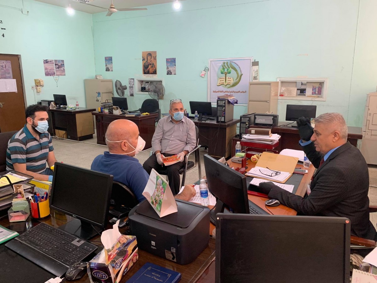 عقدت لجنة تاليف منهاج القراءة السريانية للصف الخامس الابتدائي، اجتماعا وذلك اليوم الثلاثاء الموافق 12 ايار 2020 ، في مقر المديرية العامة للدراسة السريانية في بغداد، بحضور رئيس اللجنة السيد عماد سالم ججو المدير العام واعضاء اللجنة من كوادر المديرية في بغداد السيد سالم اسطيفان ابونا والسيد عماد داود مدير قسم التقنيات والمنهاج والسيد مارك واثق مسؤول شعبة التاليف والترجمة.