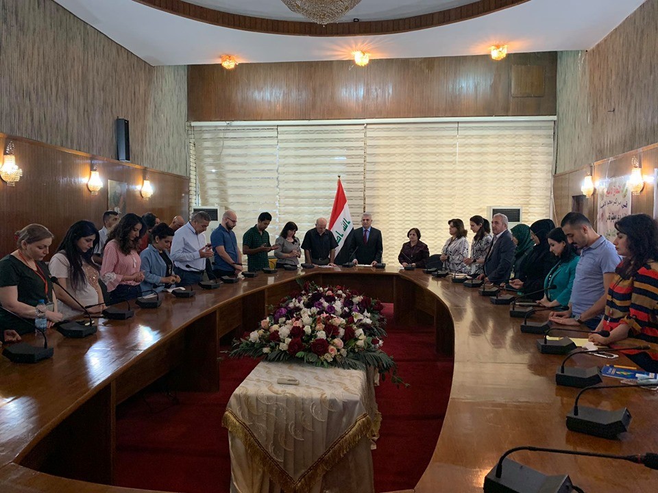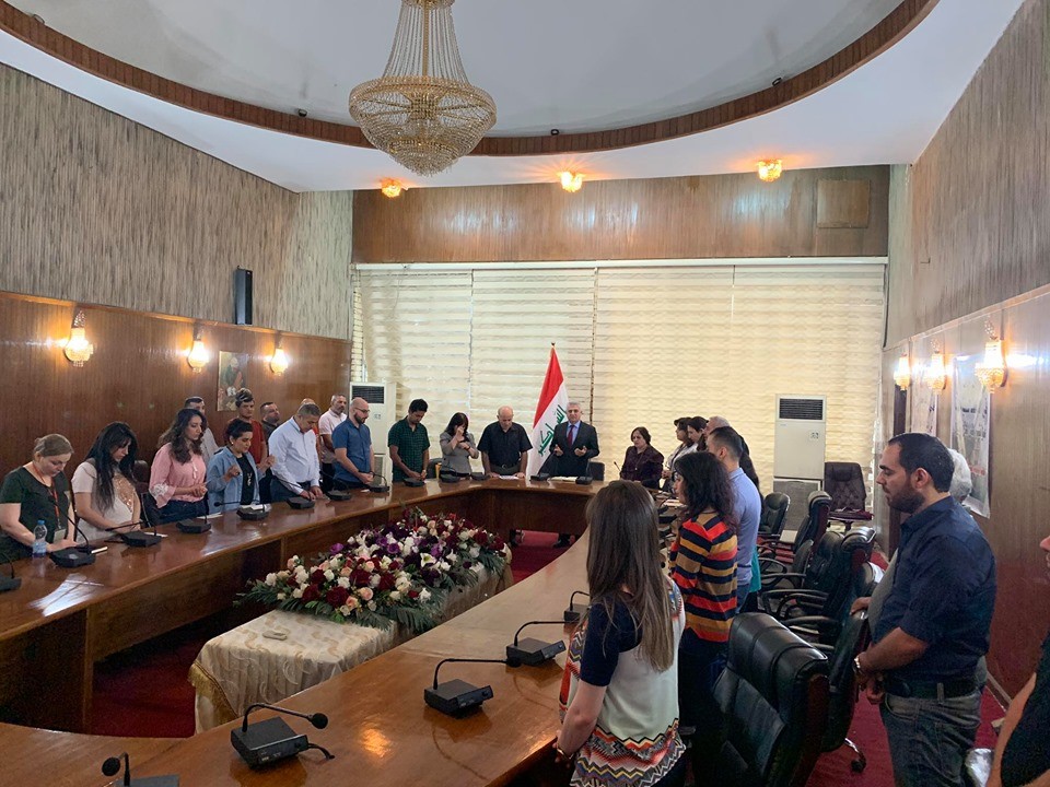 هذا وقبل بداية الاجتماع كانت هناك صلاة جماعية للموظفين من اجل الشهداء والشفاء العاجل للجرحى من المتظاهرين بعد اعلان الحداد ثلاث ايام في العراق .