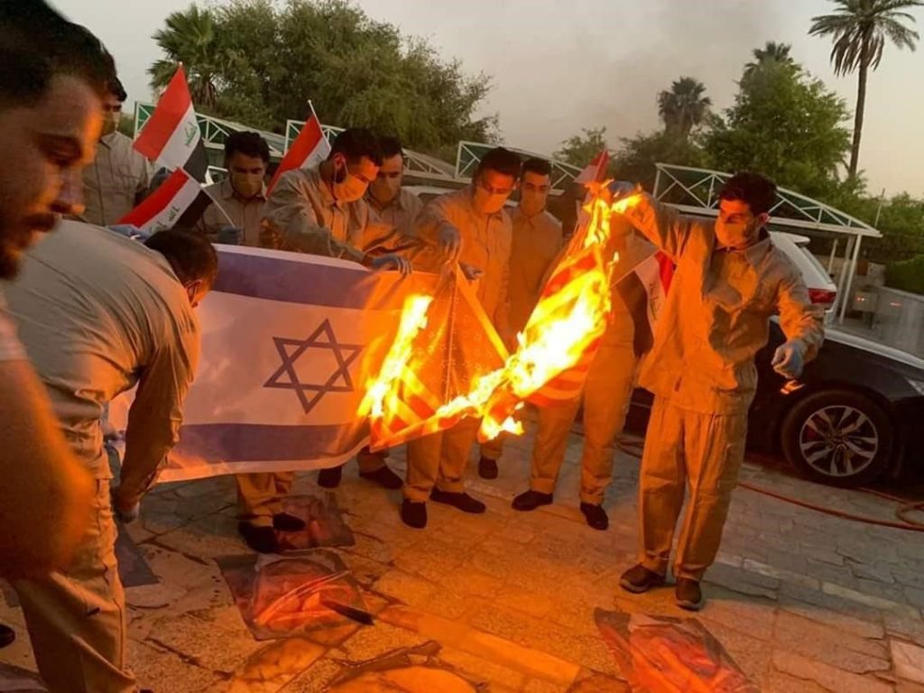 وخلال الساعات الماضية، انتشرت صور لعناصر حزب الله وهم يضعون صور رئيس الوزراء مصطفى الكاظمي تحت أقدامهم قبل حرقها مع العلم الإسرائلي في تحد واضح للحكومة وسط العاصمة.
