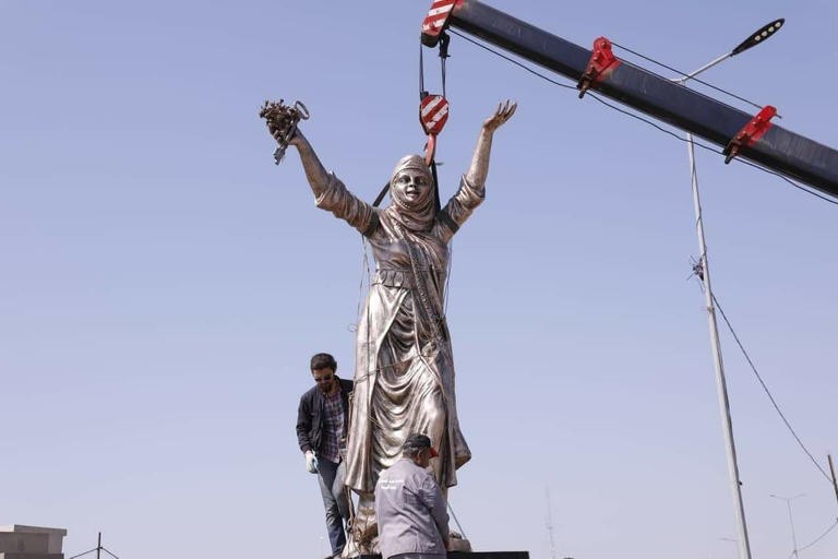 وتنتصب الفتاة الربيعية بشموخ عند ساحة المدينة التي كانت مسرحاً لعمليات الإعدام التي نفذها داعش بحق المخالفين لقوانينه وتعليماته المتطرفة إبان احتلاله لعدد من المحافظات قبل سنوات.