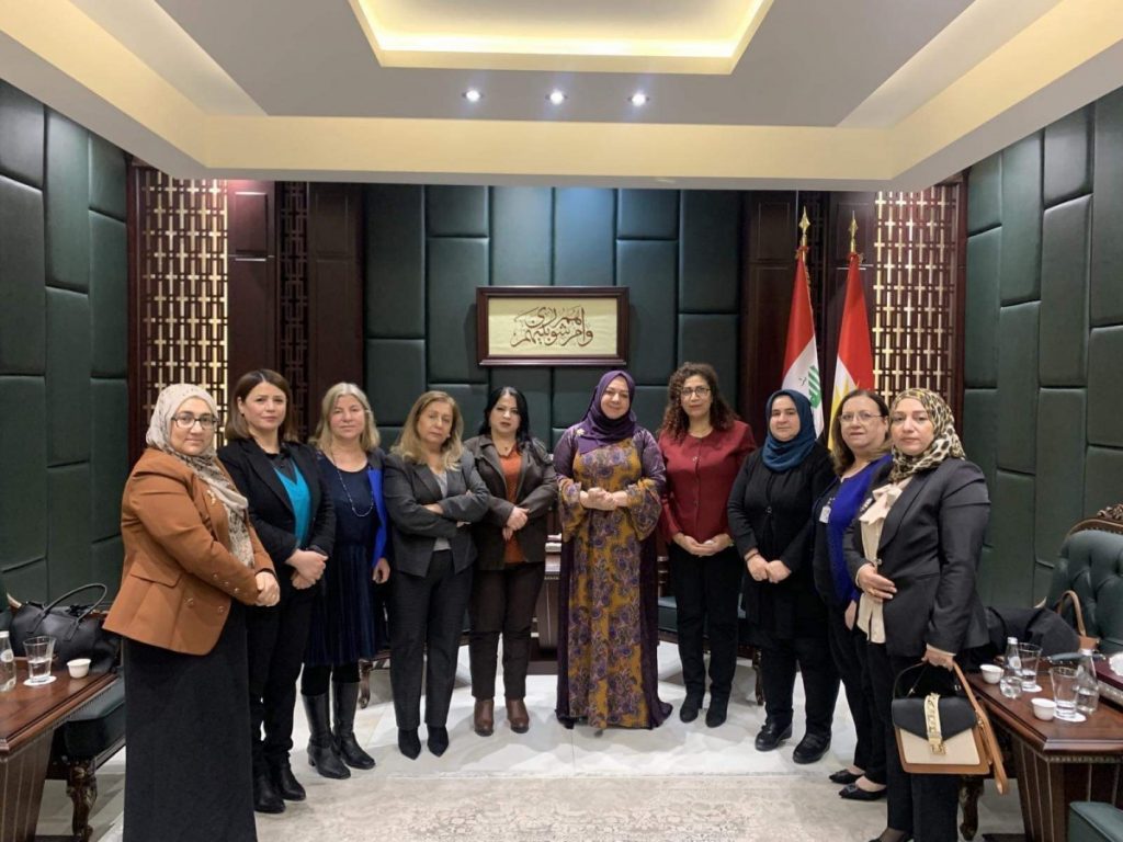 وقام الوفد بتسليم المشروع المقترح والذي يخص (اصلاح قوانين اقليم كردستان في مجال العدالة والجندر ) ،وقد رحبت السيدة رئيسة البرلمان بالوفد ووعدت بإدخال المشروع في برنامج عمل البرلمان. وكانت ضمن الوفد السيدة مارلين يوسف مسؤولة مكتب علاقات الاقليم لإتحاد النساء الآشوري.
