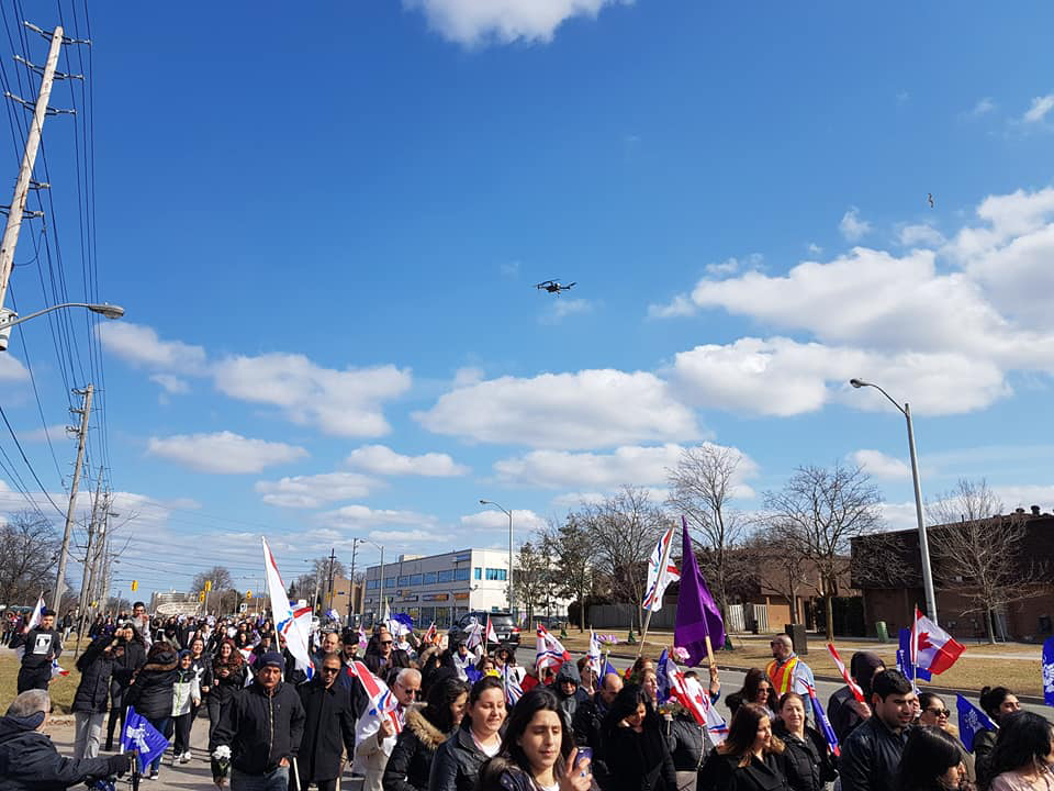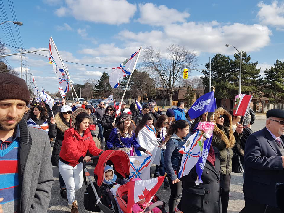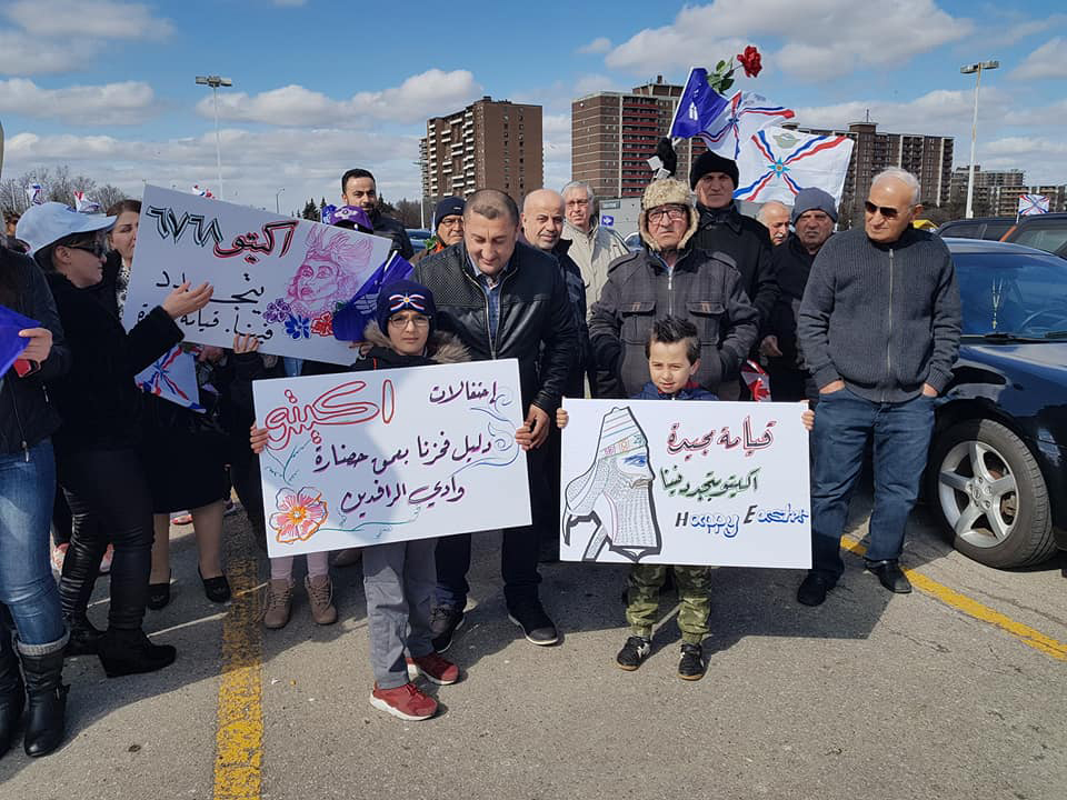 في غمرة أحتفالات أبناء شعبنا الكلداني السرياني الاشوري بأعيادنا القومية والدينية أحتفل أبناء شعبنا بعيد القيامة المجيد، وعيد أكيتو 6768 رأس السنة البابلية الآشورية في يوم الأحد 1 نيسان 2018. حيث أمتلات شوارع مدينة تورنتو بالجماهير المحتشدة متزينة بملابس العيد ومزهويين بملابسنا القومية والفلوكلورية وملئت الأبتسامة أفواه الصغار والكبار بقدوم ربيع نيسان ليتكلل بنيسانو الخالد الذي أحتفل به أبائنا وأجدادنا، وعلى أنغام موسيقى تراثنا الشعبي رقصوا حيث عبروا عن فرحتهم وصدحت حناجرهم بأيات من الأناشيد الوطنية وكلمات الحب ،حبا للوطن وأحياءا لتراثنا الخالد، في مسيرة طويلة لم يمل منها المسنون ولا الأطفال حتى أكملت المسيرة بمشاركة العديد من المقعدين وبدراجاتهم المزينة بالزهور النيسانية وأعلامنا القومية، ليصلوا الى قاعة الأحتفال لتبدأ الحفلة بالقاء الكلمات والقصائد الشعرية مخلدين بذلك يوم أفراح نيسان بأكيتو جديد، حيث القى السيد كوركيس ياقو مسؤول قاطع كندا للحركة الديمقراطية الآشورية كلمة بالمناسبة مرحبا بكل المشاركين،ثم كلمة الأب أيشو يوخنا راعي كنيسة مريم العذراء لكنيسة المشرق الآشورية في تورنتو، بعدها القى الشاعر المخضرم الدكتور مديح الصادق قصيدة مؤثرة بالمناسبة مستلهما بذلك الروح الوطنية للعراقيين ودورهم في دحر الأرهاب، بعدها جاء دور الشاعر زيا البازي في قصيدة رائعة للحب الذي يغمر قلوب المحتفلين، ثم مشاركة الشاعر بولص الآشوري بقصيدة تحت عنوان نيسانو،التي عبق أريجها من حنايا تراثنا الخالد، ويأتي دور الكاتب آشور قرياقوس ديشو بقصيدة من الشعر الحر مهلما مشاعر الناس في مدح عشيقته الملكة الآشورية ، لينتهي الحفل بمشاركة العديد من فناني شعبنا في كندا، الفنان القدير ساكو كبريال القادم من مدينة وزنر،الفنان المحبوب فؤاد عمانوئيل، الفنان المخضرم جيمس أوديشو، الفنان رامن يوسف، والعازف الفنان الموهوب مايك حنا،والعازف نونو برخو. ولينتهي الحفل الى ساعة متأخرة من الليل بالرقص والفرح .أما الأطفال فكان لهم نشاط أخر في فن الرسم، حيث خطت أناملهم الجميلة أحلى رسومات بحب الوطن.كل عام وشعبنا بخير