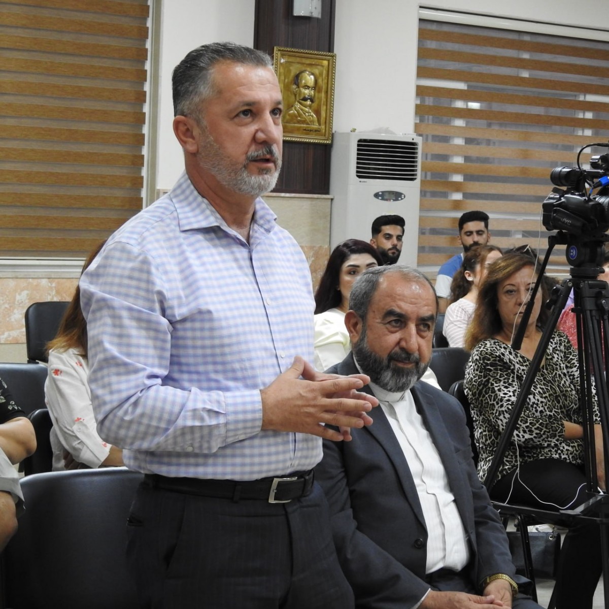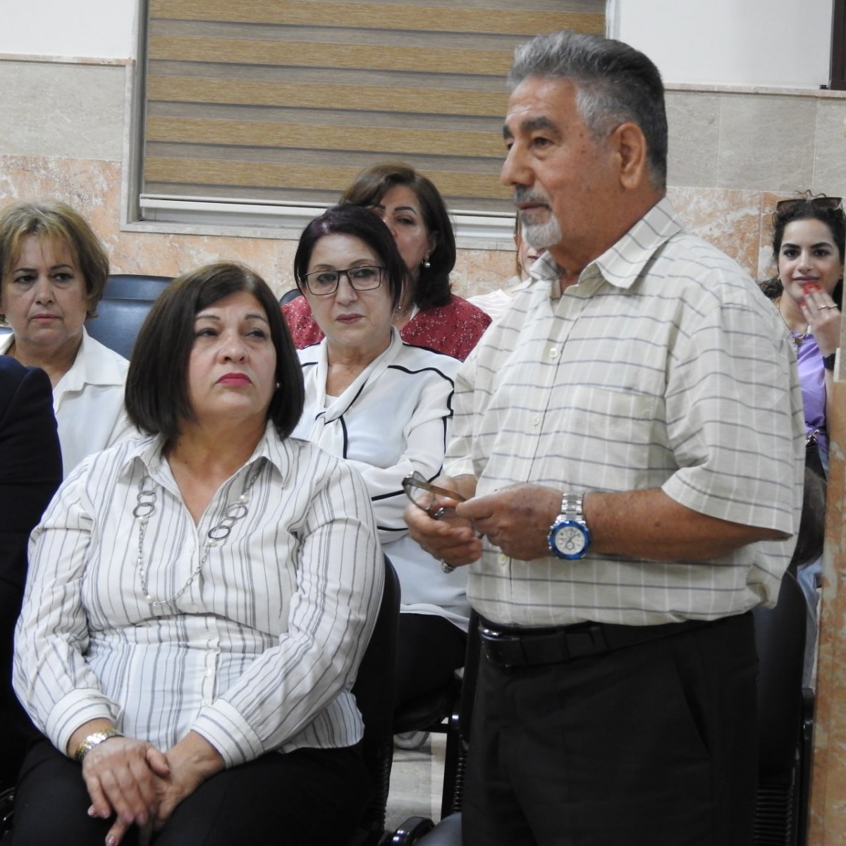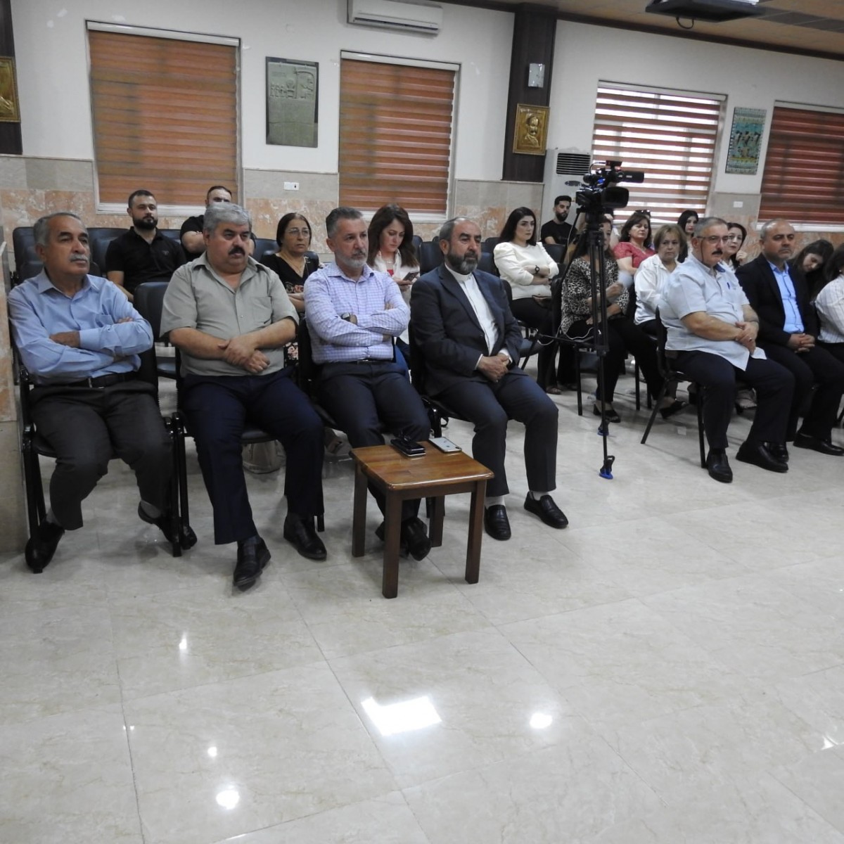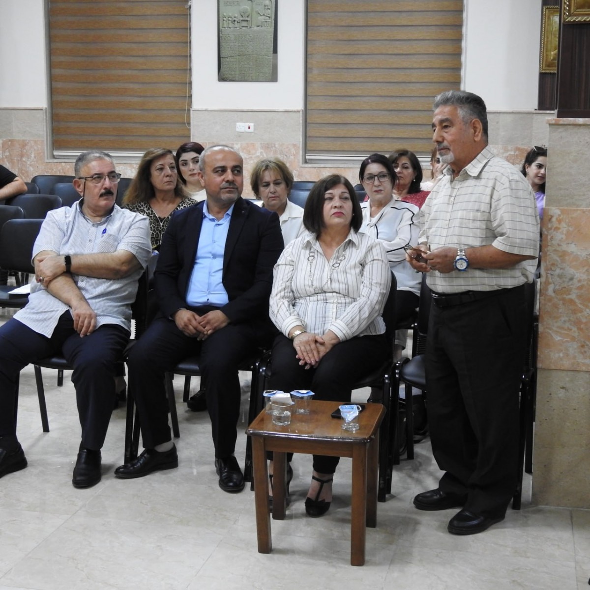 و أغنى المحاضرة مشاركة ضيوفنا الأفاضل السيد فريد يعقوب عضو برلمان أقليم كردستان، القس ايشا داود راعي كنيسة مار كوركيس بأربيل، المحامي أفرام فضيل بهرو، السيد مؤيد شليمون مدير تربية قسم اللغة السريانية، و السادة الكرام مدراء مدارسنا السريانية و وفد من اتحاد الطلبة و الشبيبة الكلدوآشوري و عدد من أبناء شعبنا.