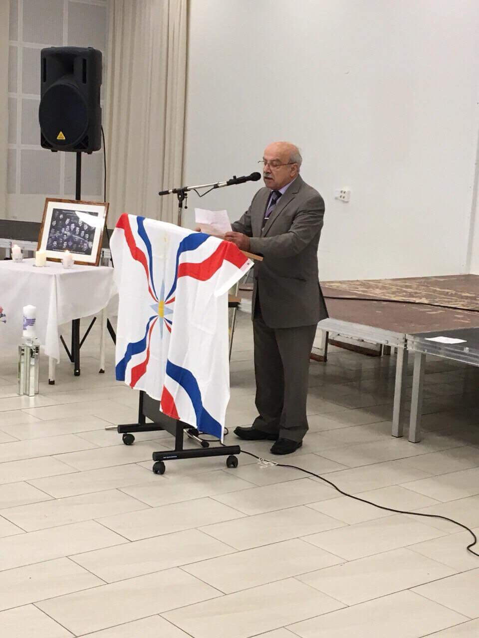 هذا والقى الاب الفاضل وردا اوراهم كاهن رعية مريم العذراء للكنيسة الشرقية القديمة في يوتبوري كلمة قيمة معبراً فيها عن معنى الشهادة وضرورة استذكار شهدائنا اللذين ضحوا بالغالي والنفيس من اجل حقوقنا القومية.