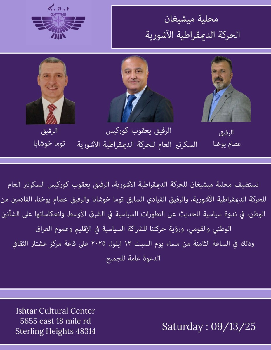 اعلان من محلية ميشيغان/ فرع أميركا للحركة الديمقراطية الاشورية