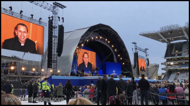 هذا، وقد وقدمت السيدة إيناس شهادة مؤثّرة بأسم عائلة الأب الشهيد رغيد، لقداسة البابا فرنسيس وامام ألاف الحاضرين في ملعب دبلن،قائلة بأن اخوها الكاهن الكاثوليكي رغيد كني استشهد في سبيل إيمانه بالمسيح وذلك خلال الحرب. وبأنهم يفتقدونه جداً. ودعت قداسة البابالمشاهدة الفيديو القصير  الذي أعده رامي الذي لا يزال يعيش في قريتهم كرمليش في العراق.