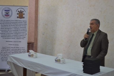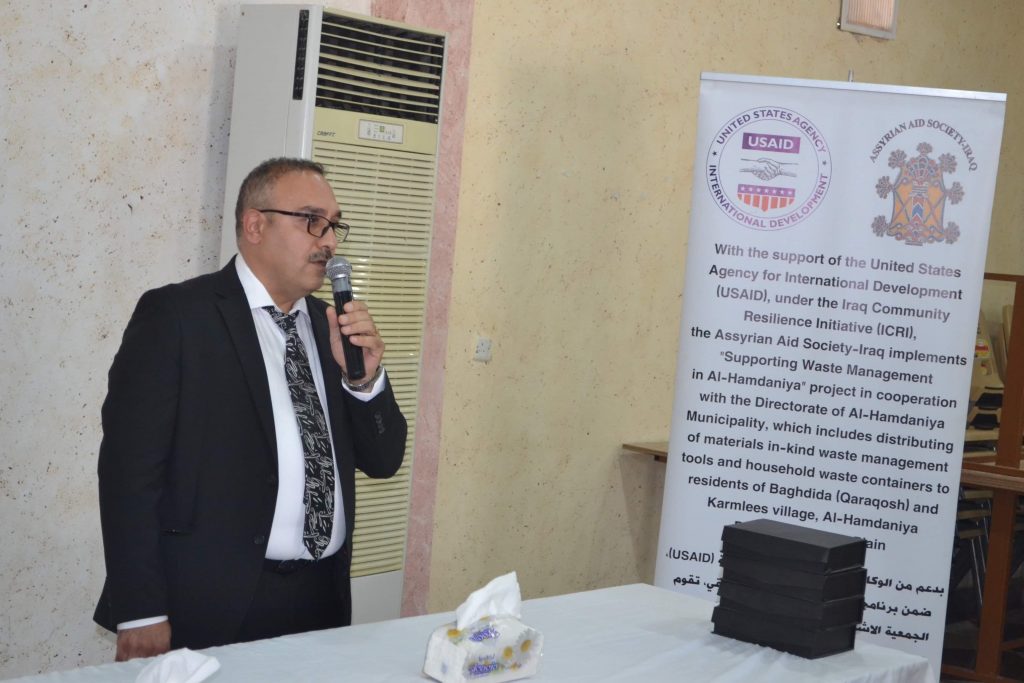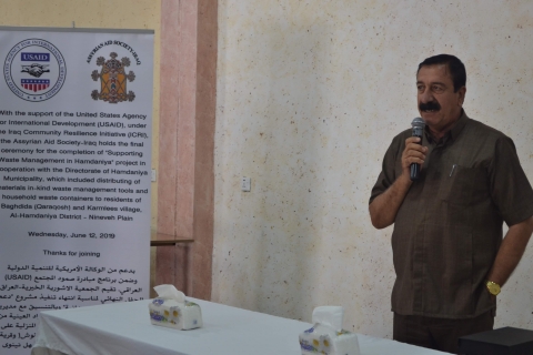 ضمن مبادرة صمود المجتمع العراقي والممول من قبل الوكالة الأمريكية للتنمية الدولية (USAID)، وبالتنسيق مع قائممقام ومدير بلدية قضاء الحمدانية، أقامت الجمعية الآشورية الخيرية_العراق الحفل الختامي الخاص بمشروع دعم إدارة النفايات في قضاء الحمدانية بسهل نينوى يوم الأربعاء الموافق 12 حزيران 2019 في قاعة اللؤلؤة. وقد حضر الحفل ممثلي المجلس البلدي السيد عماد باباوي والسيد غازي ومدير شرطة الحمدانية ومدير البلدية والسيد يوحنا والمهندس رامي إلى جانب عدد من ممثلي الدوائر الأمنية والخدمية في المنطقة بالإضافة إلى حضور السيد سلام ممثلا عن USAID.