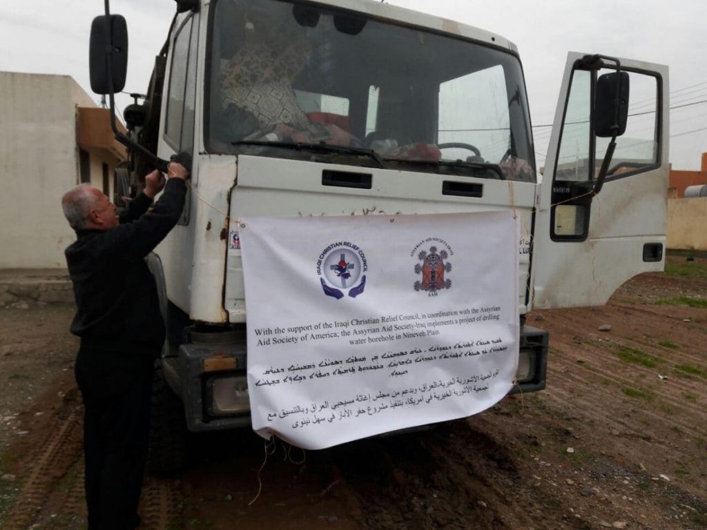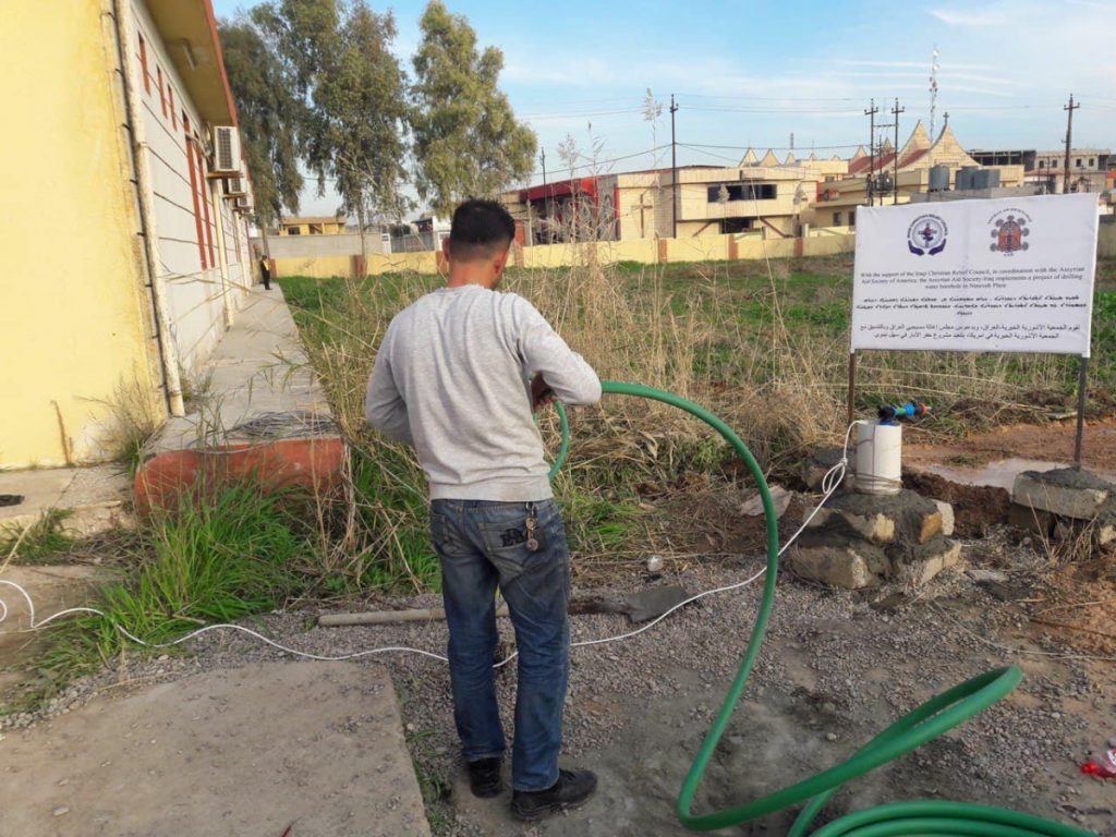 قامت الجمعية الآشورية الخيرية وبدعم من مجلس إغاثة مسيحيي العراق (Iraqi Christian Relief Council ) وبالتنسيق مع الجمعية الآشورية الخيرية في أمريكا، بتنفيذ مشروع حفر آبار في سهل نينوى لتوفير المياه للاستخدامات المختلفة، حيث قامت الجمعية بحفر ثلاث آبار مع كافة مستلزماتها في منطقة بخديدا وبرطلة للفترة من 31 كانون الثاني ولغاية 11 شباط 2021.