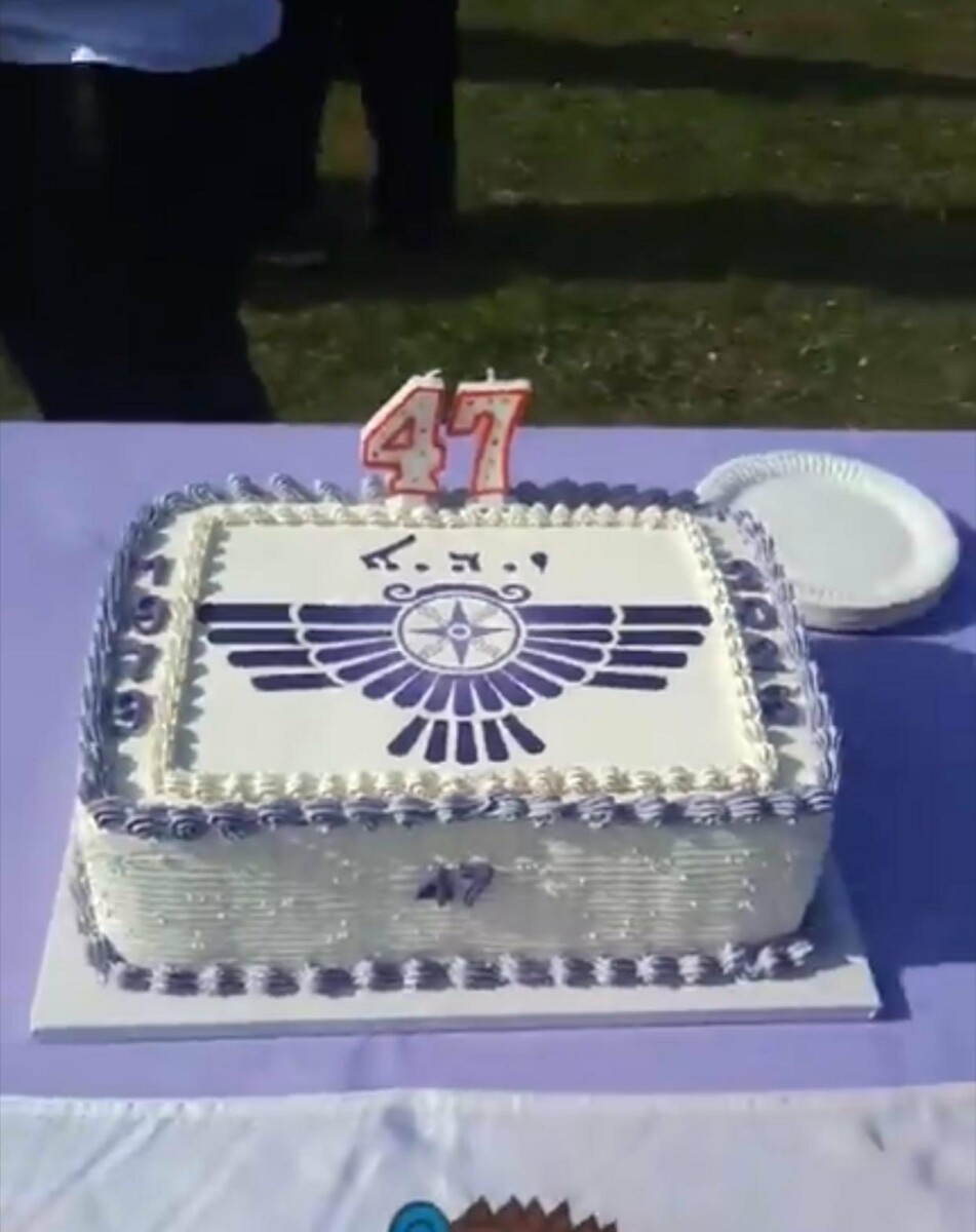 وفي أجواء احتفالية، وعلى أنغام الفرقة الموسيقية الخاصة بالمناسبة، وبمشاركة العازف المبدع نديم، والفنان سمير بيوتي، جرى تقطيع قالب الكعك الذي صُمم خصيصاً للذكرى السابعة والأربعين لتأسيس الحركة وحمل شعار زوعا.