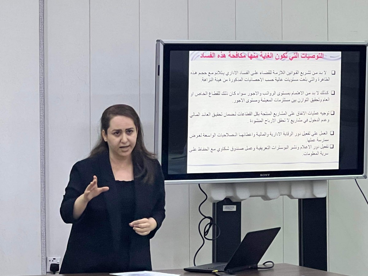 هذا وقدمت محاضرة الورشة، السيدة رونق ماهر الموظفة في المديرية العامة، حيث بينت خلالها الاثار السلبية للفساد وتأثيره وانواعه، كما شهدت الورشة مداخلات من المشاركين وطرح المقترحات للحد من شبهات الفساد والقضاء عليها.
