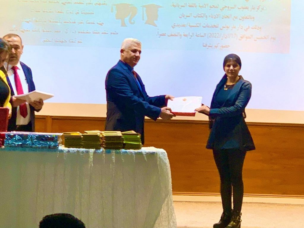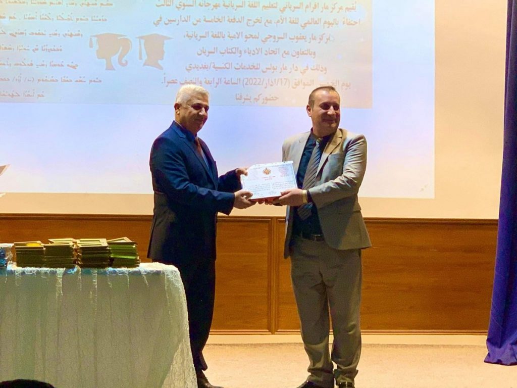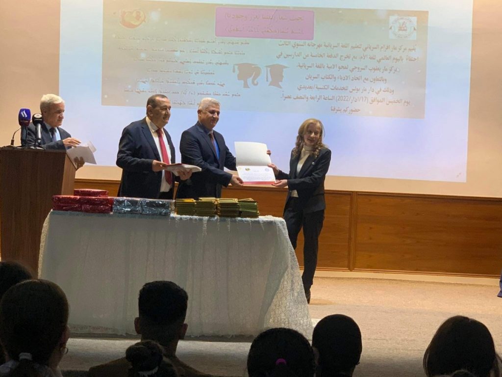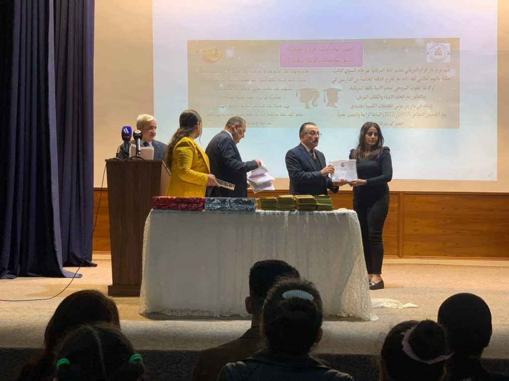 جاء ذلك خلال كلمه القاها السيد عماد سالم ججو المدير العام للدراسة السريانية، في المهرجان السنوي الثالث الذي اقامه المركز بالتعاون مع اتحاد الادباء والكتاب السريان، احتفاءا بيوم اللغة العالمي (اللغة السريانية) ولتخرج الدفعة الخامسة من الدارسين في المركز، واشار خلال كلمته الى جهود المديرية العامة في نشر وتعليم اللغة السريانية للكبار عبر تنفيذ مشروع محو الامية باللغة السريانية منذ عام 2014 والى وقتنا الحاضر، مؤكدا اهمية اللغة وواجب الحفاظ عليها وتعليمها.