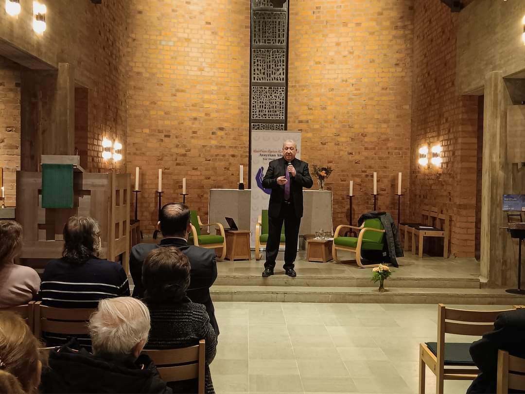 ممثل المرصد الآشوري في مقاطعة سورملاند يعقوب الياس وذلك مساء يوم الأحد المصادف في 22 تشرين الأول / أكتوبر 2023 في كنيسة أنسغاريس السويدية في مدينة اسكلستونا.