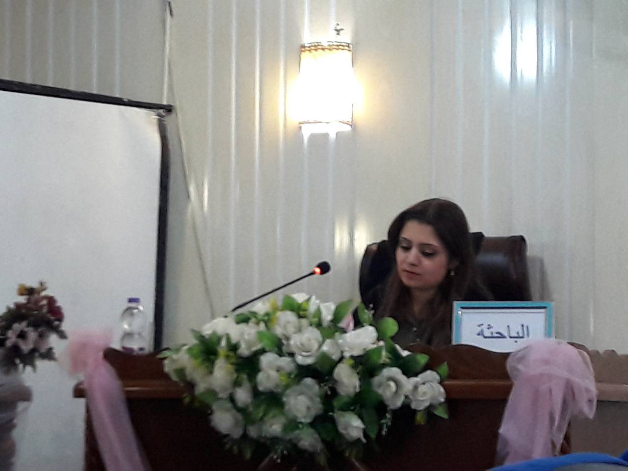 وحصلت الطالبة “هبة” على تقدير امتياز في مناقشة رسالتها مع اللجنة المؤلفة من ” أ.د نجدت عبد الرؤوف عبد الرزاق (رئيسا)، أ.م.د بروين محمود شاكر (عضوا)، أ.م.د علي موحان عبود(عضوا)، أ.د سامي سوسة سلمان (عضوا ومشرفا)”.