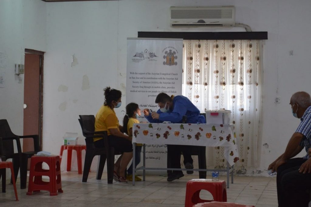 قامت الجمعية الآشورية الخيرية-العراق من خلال عيادتها المتنقلة وبدعم من الكنيسة الآشورية الانجيلية في سان هوزيه وبالتنسيق مع الجمعية الآشورية الخيرية في أمريكا بتقديم خدماتها الطبية لأبناء شعبنا في قرى محافظة دهوك وذلك من خلال عمل جوالات متعددة بلغت (6) زيارة ميدانية لشهر ايلول 2021 شملت زيارة قرى (مركاصور، بيركا، صوركا، مسيريك، مجمع ديرالوك وبادرش) تم فيها فحص ومعالجة (864) فرداً من أبناء شعبنا وتزويدهم بالعلاج المناسب، كما تم تزويد الافراد من ذوي الامراض المزمنة بما توفر من علاجات للامراض المزمنة كلاً حسب حالته.