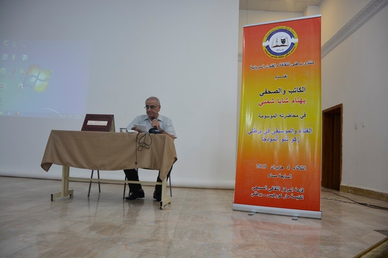 برعاية منتدى برطلي للثقافة والفنون السريانية، ألقى الكاتب والصحفي بهنام شابا شمني محاضرة حملت عنوان (الغناء والموسيقى في برطلي… زكو تنو أنموذجا). وحضر المحاضرة التي احتضنتها قاعة المركز الثقافي المسيحي لكنيسة مار كوركيس مساء الثلاثاء ٤ حزيران الجاري، الاب الخوري قرياقوس حنا طراجي ،والاب بهنام للو، والاب ثاوفيلوس مسعود رفو، ومدير دائرة الوقف المسيحي في الحمدانية عبدالكريم متي، ومدير بلدية برطلة المهندس بولص يعقوب، وممثلين عن عدد من المؤسسات الاجتماعية والامنية في برطلي فضلا عن جمهور من المهتمين بالثقافة والغناء والموسيقى السريانية الشعبية.