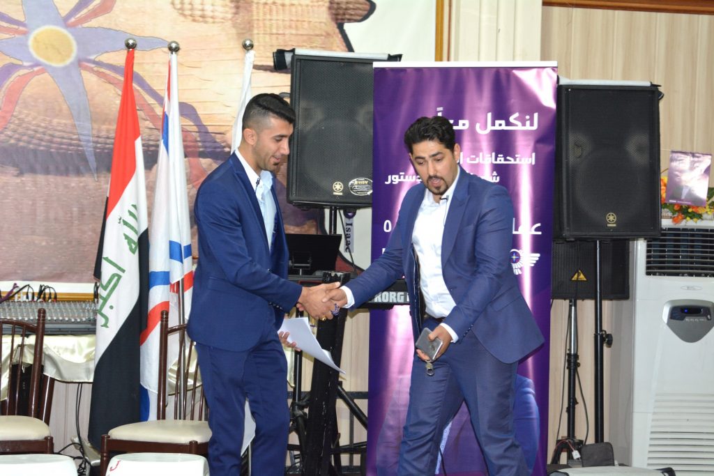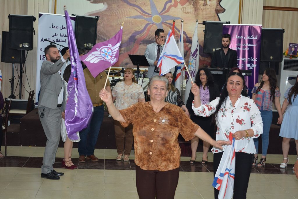 ابتدأ الحفل بالوقوف بدقيقة صمت على ارواح شهداء الوطن بصورة عامة وشهداء شعبنا بصورة خاصة تلاها النشيد الوطني العراقي بعدها تم عرض مشهد مسرحي بعنوان (لن اذهب) قدم من قبل المبدع رامي يعقوب، جسد فيه اهمية المشاركة وعدم مقاطعة الانتخابات، بعدها تم عرض السيرة الذاتية للمرشح عن محافظة كركوك في ائتلاف الرافدين 144 عماد يوخنا ذو العدد 5.