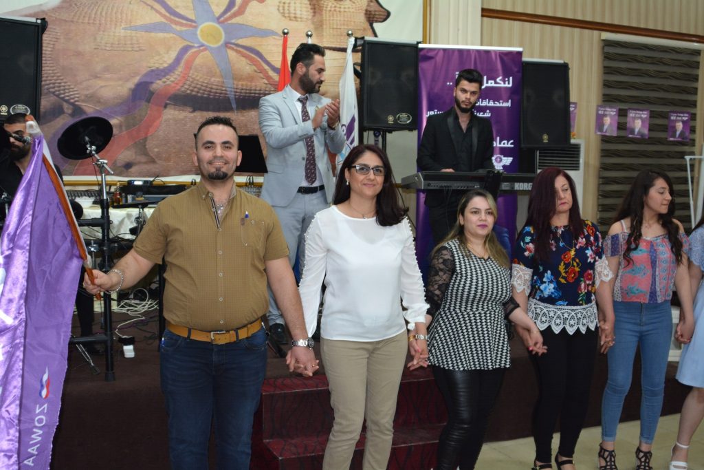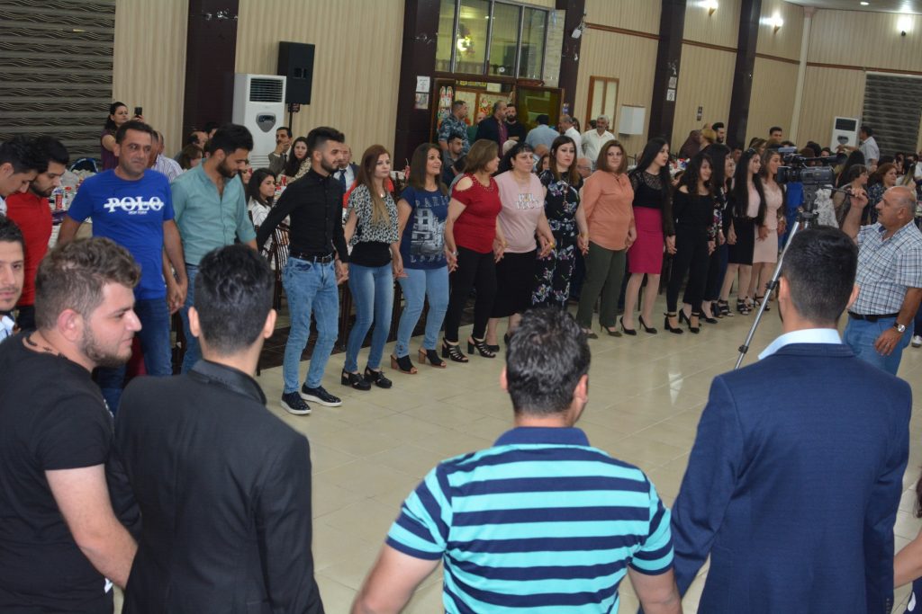 بعدها شارك الحضور في الحفل الفني للمطرب المتألق ستيفن سايمون بالرقصات الفلكلورية لشعبنا مرددين عبارات وهتافات لائتلاف الرافدين 144.