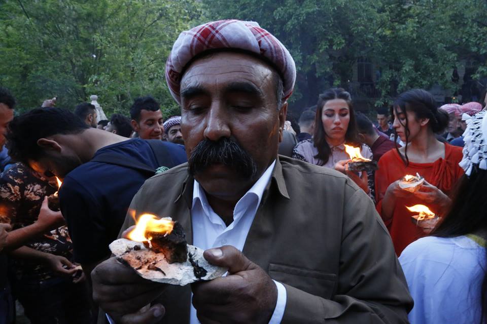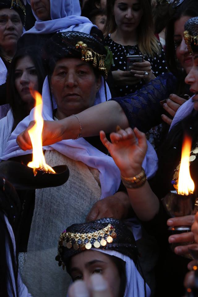 وقبل يوم من العيد، أي يوم الثلاثاء، يقوم الإيزيديون بنحر القرابين، وإشعال النيران مساءً.