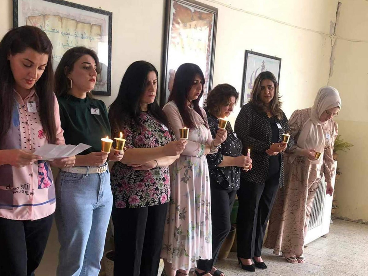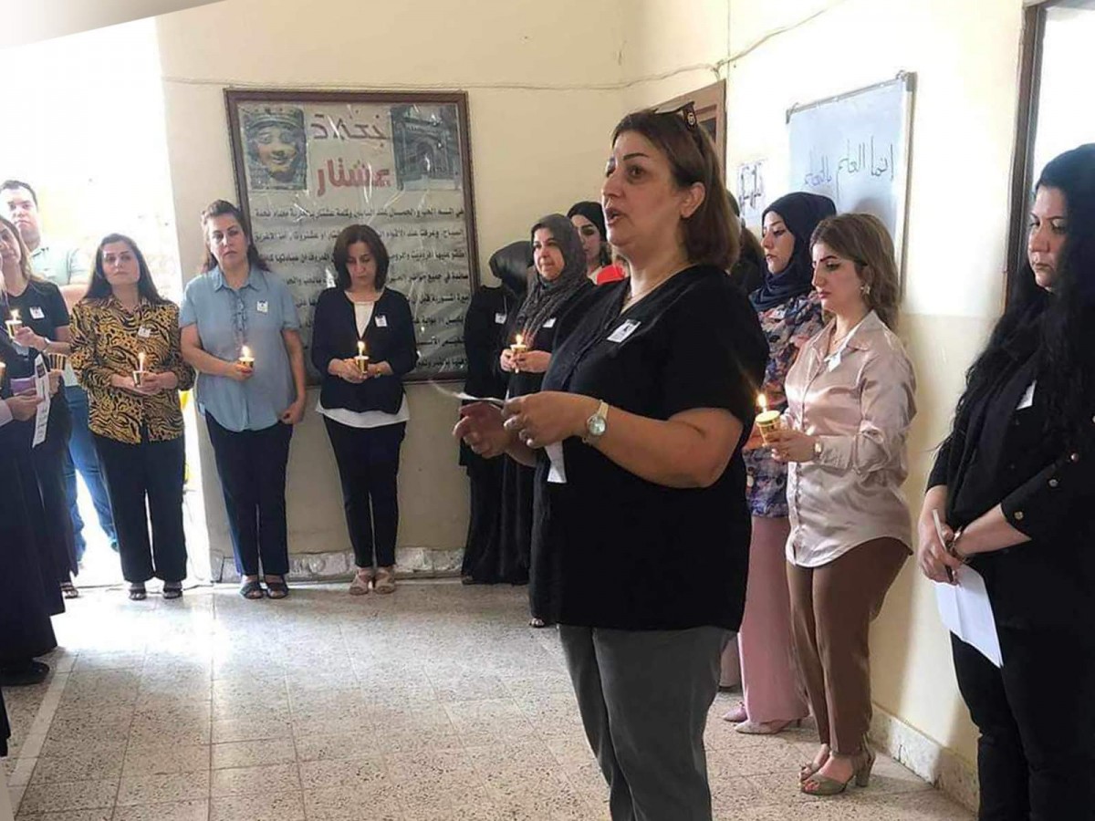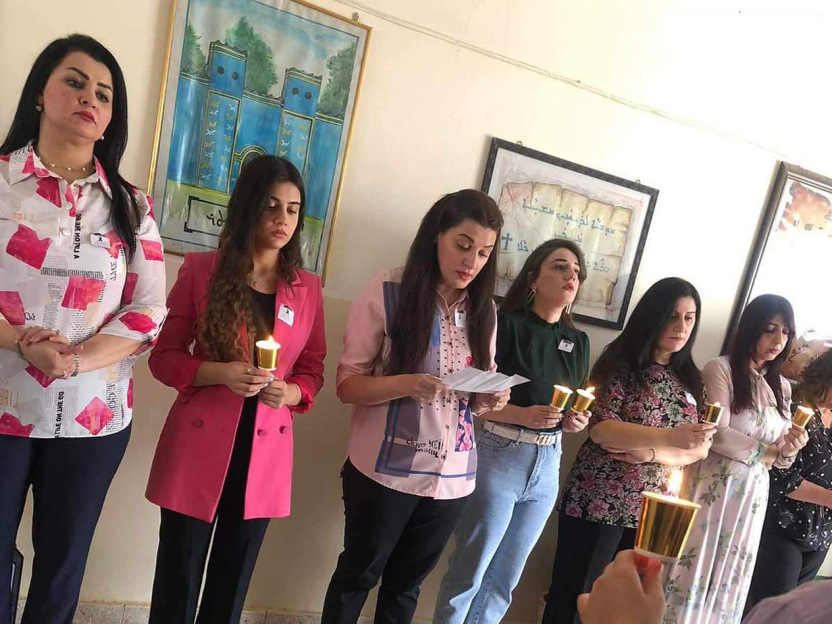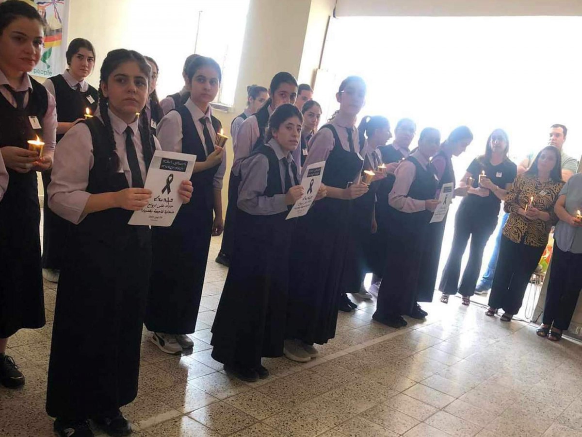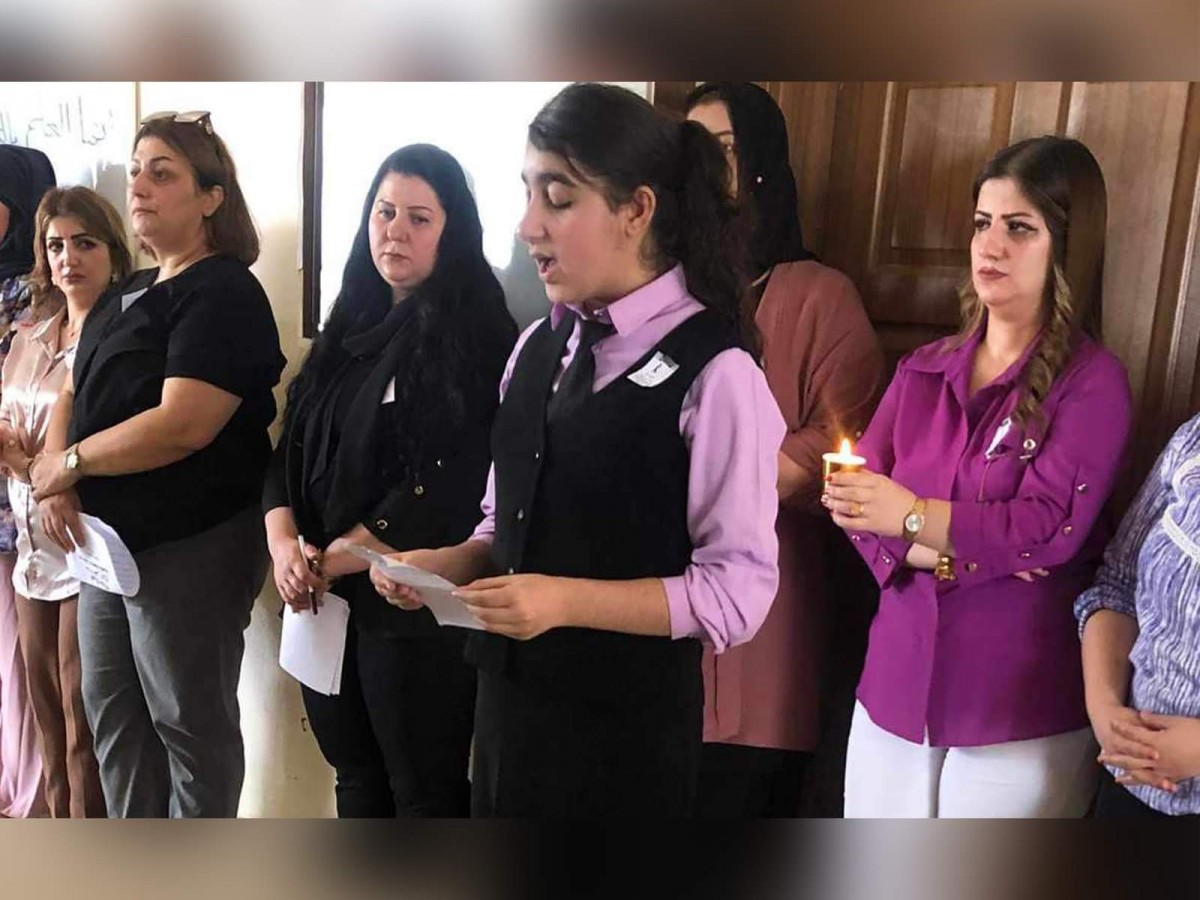 اقامت ثانوية عشتار للبنات المشمولة بمناهج الدراسة السريانية في كركوك، صباح يوم الاحد الموافق 1 تشرين الاول 2023، وقفة تضامن حدادا على ارواح ضحايا حادث الحريق في قضاء الحمدانية.