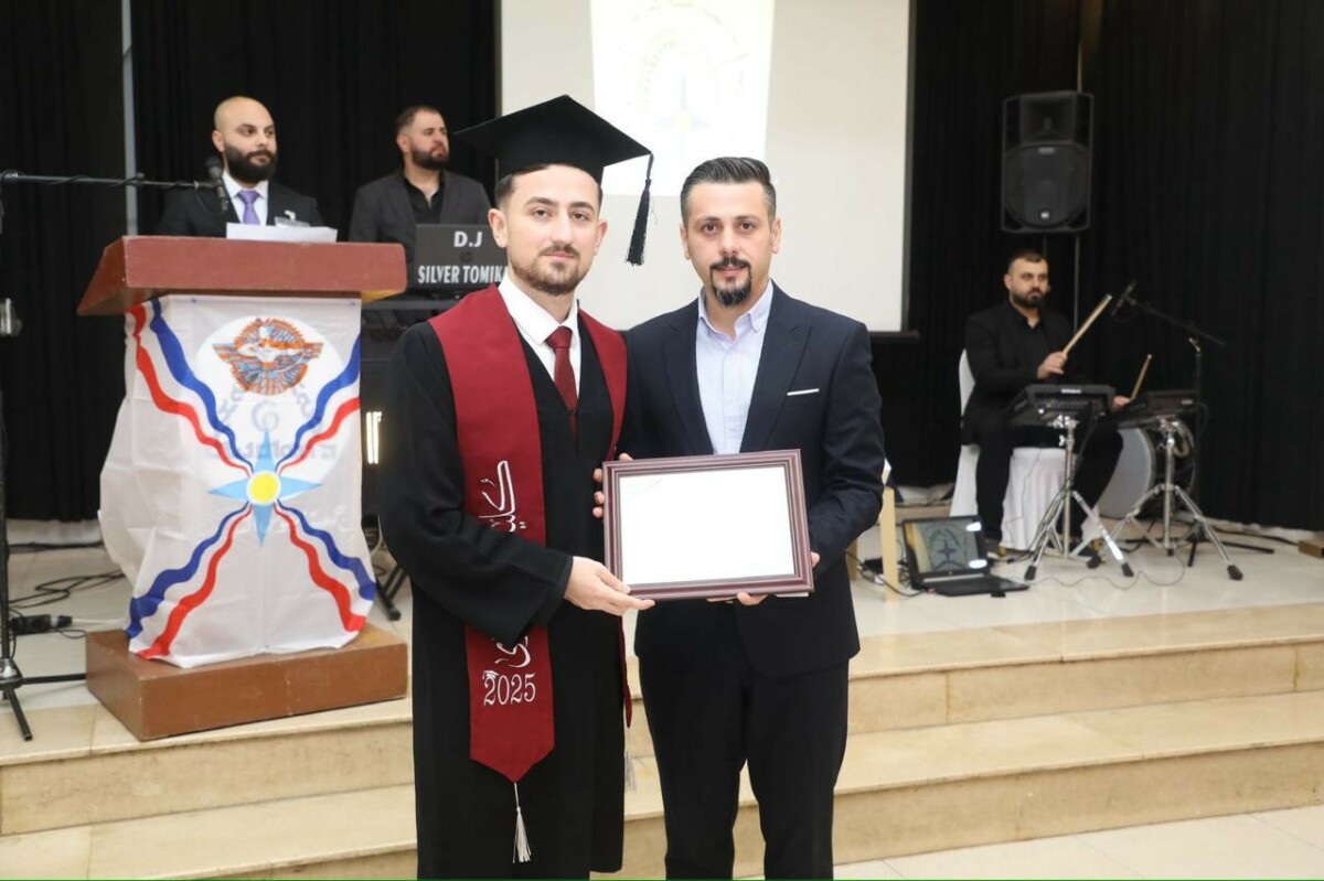 كما شارك وفد الحركة في توزيع الهدايا على الطلبة الخريجين، تعبيراً عن تقدير جهودهم وتشجيعهم على الاستمرار في مسيرتهم العلمية، مشدداً على أن دعم الشباب وتمكينهم يمثل أحد الأسس الثابتة في نهج الحركة الديمقراطية الآشورية ورؤيتها المستقبلية.