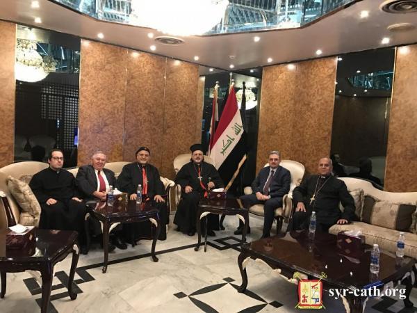 في قاعة الشرف في مطار بغداد، كان باستقبال غبطته سيادة المطران مار أفرام يوسف عبّا رئيس أساقفة بغداد والنائب البطريركي على البصرة والخليج العربي وأمين سرّ السينودس المقدس، والخوراسقف أفرام كذيا، والسيّد رعد جليل كجه جي رئيس ديوان أوقاف المسيحيين والديانات الأخرى، والسيّد واثق هندو.