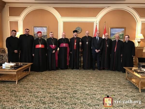 وفي قاعة الشرف بمطار أربيل، كان في استقبالهم أصحابُ السيادة المطارنة: مار يوحنّا بطرس موشي رئيس أساقفة الموصل وكركوك وكوردستان، وبشّار وردة مطران أبرشية أربيل الكلدانية، ومار نيقوديموس داود شرف مطران أبرشية الموصل وكوردستان للسريان الأرثوذكس، والسيّد خالد ألبير مدير عام شؤون المسيحيين في إقليم كوردستان، والخوراسقف نوئيل القس توما، والأب نهاد القس موسى، والأب مجيد عطالله.