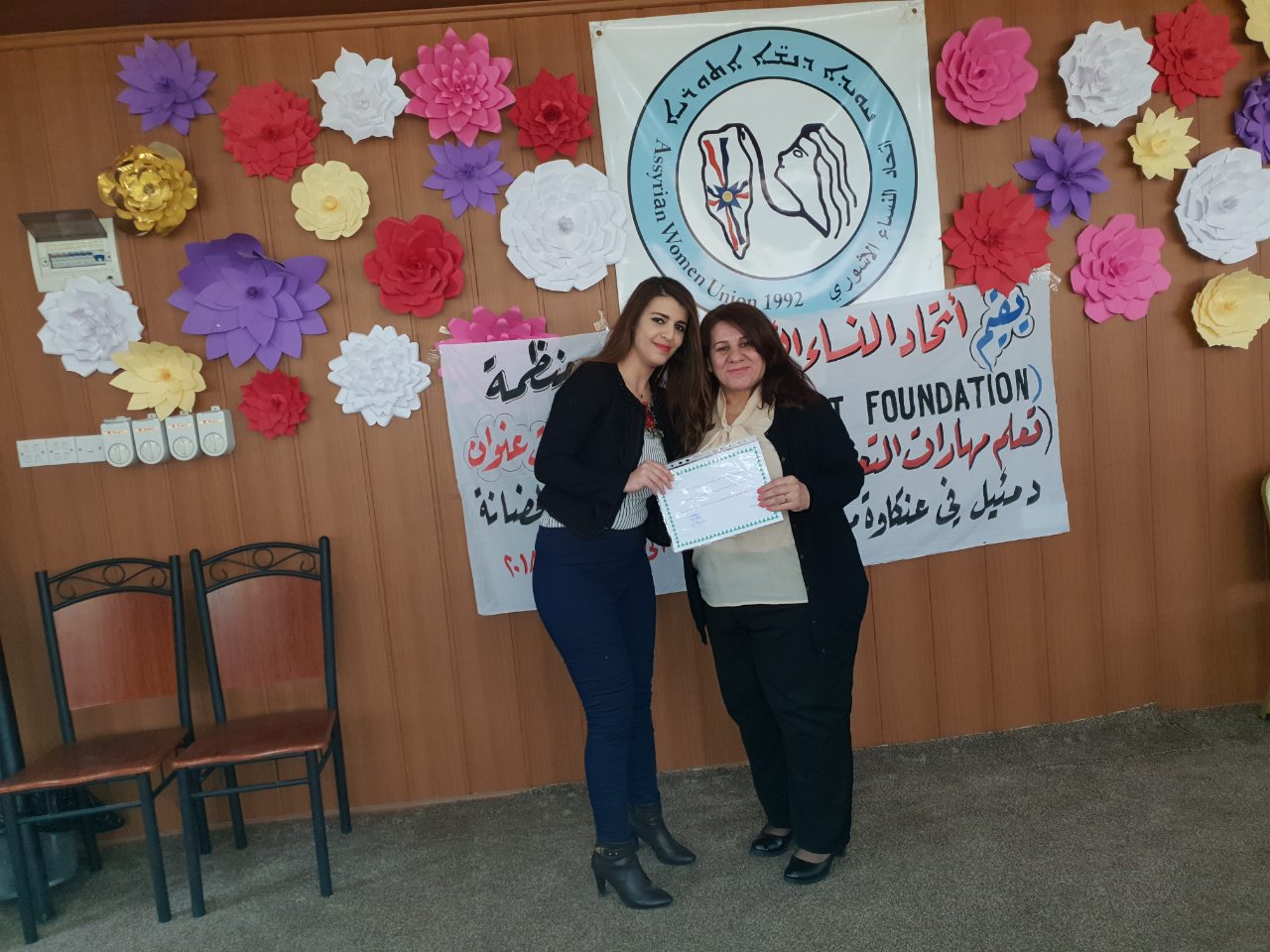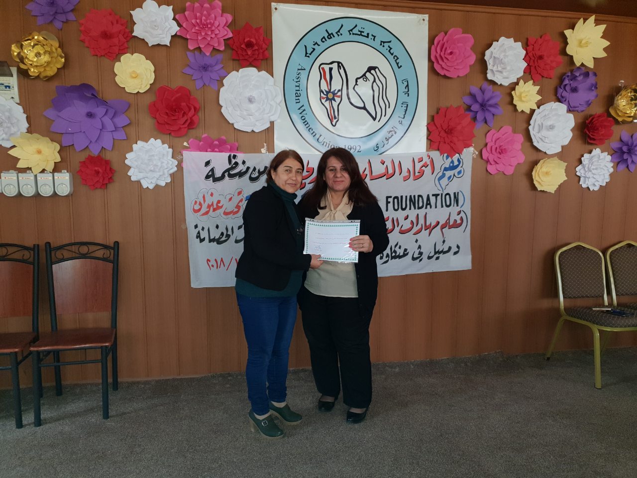 في الختام، شكرت مسؤولة الفرع السيدة نجيبة خنانيا المشاركات و منظمة SOLT foundation لدعمها للمشروع ماديا و تم توزيع الشهادات لجميع المشاركات من قبل مسؤولة الفرع و المدربة.