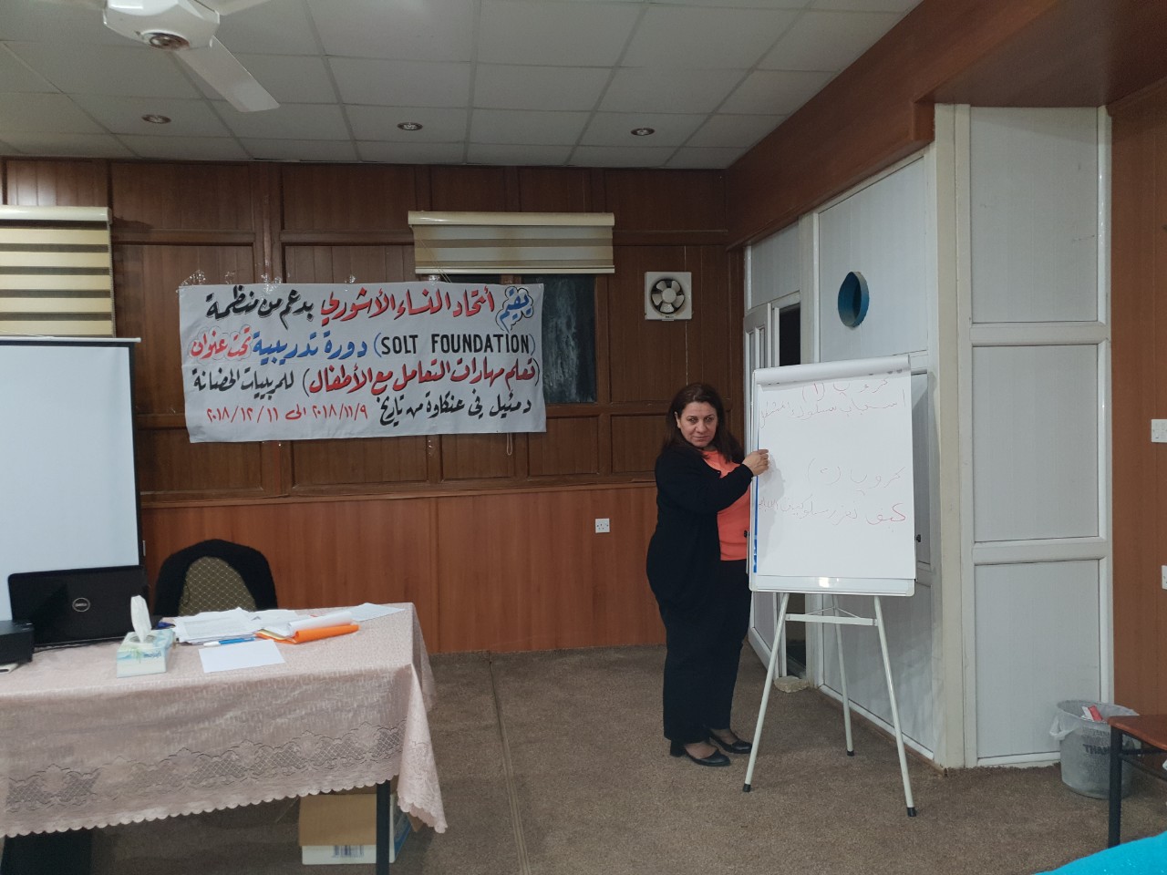 بهدف تطوير مهارات تعامل المربيات مع الأطفال وتزويدهم بالمعلومات عن الحضانات والطرق الحديثة وعملية التعامل مع أطفال الحضانة وبدعم من منظمة (solt foundation ) أقيمت الدورة للفترة من ٩ الى ١٢ كانون الأول ٢٠١٨ ، وعلى قاعة حضانة دمئيل التابعة للاتحاد وحاضرت فيها السيدة زهيرة كاسبر سياوش الحاصلة على شهادة تقوية دور الباحثين الاجتماعيين من قبل جامعة سوكندال السويدية وحاصلة على شهادة IPP – INTEGRATED PARENTING PROGRAM الأول برنامج للتدريبات ومرافقة أولياء الأمور والمربين في العراق من قبل المركز العراقي للأدباء وتطوير . تناولت الدورة مواضيع متعددة منها: من هي معلمة حضانة الأطفال – مهام معلمة حضانة الأطفال – صفات معلمة الحضانة – نصائح لمعلمة الحضانة لكسب ثقة الصغار من خلال إعطائهم الحب والحنان والطرق الواجب أن يتعامل بها موظفو الحضانات ومهارة إشباع نفس الطفل بدون شروط ،افكار إبداعية لمعلمات الحضانة تساعد على تنمية عقل الطفل.