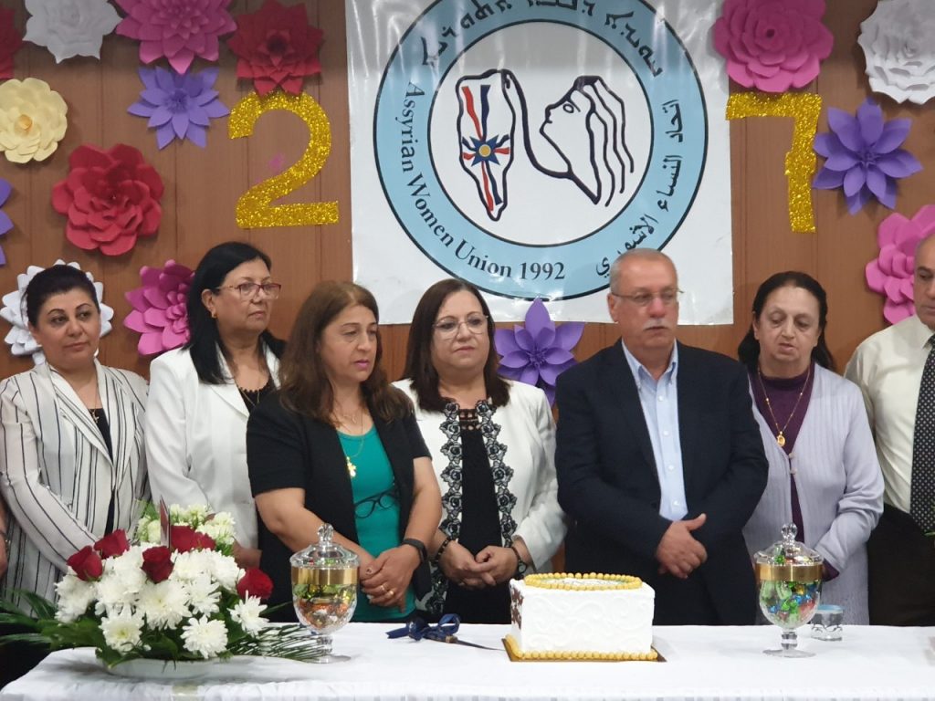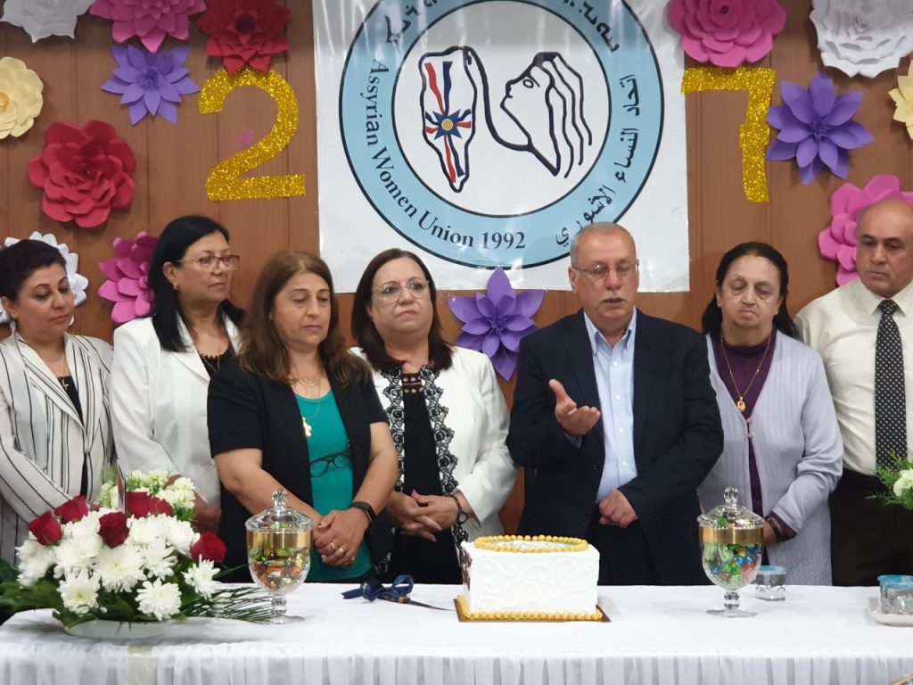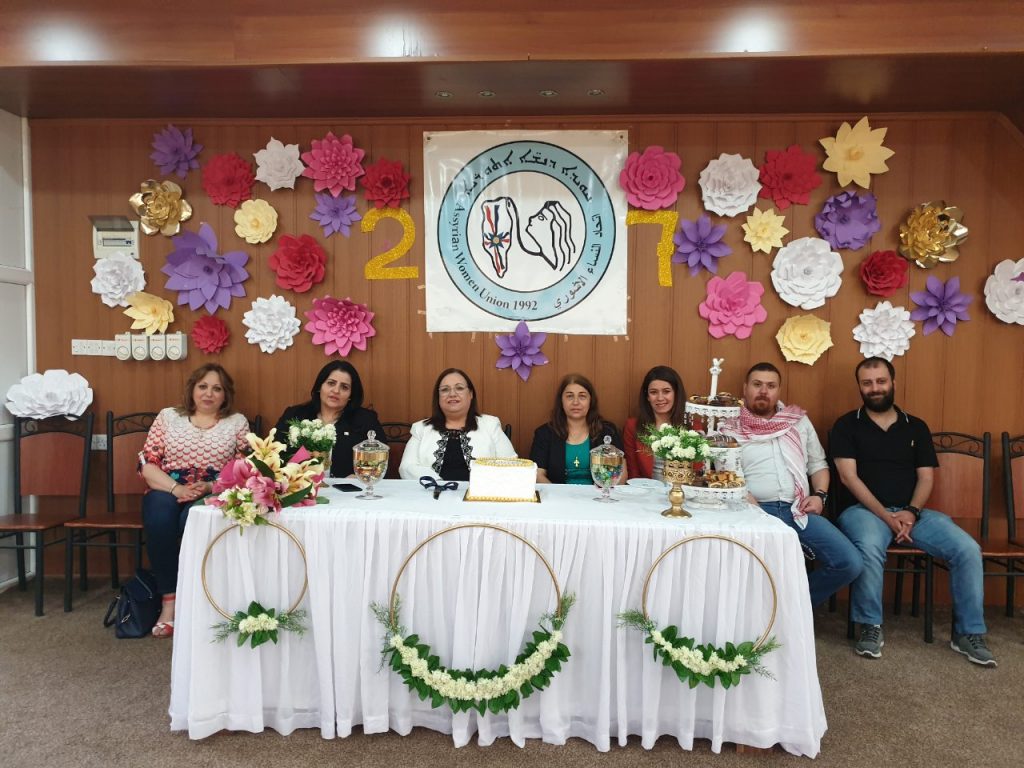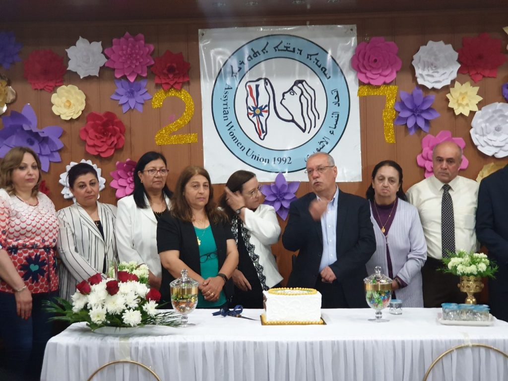 بمناسبة الذكرى الـ (٢٧) لتأسيس اتحاد النساء الآشوري احتفلت واستقبلت فروع الاتحاد بالوطن المهنئين بالمناسبة، اقام فرع بغداد للاتحاد يوم الجمعة 3 أيار 2019 حفل لاستقبال المهنئين بالمناسبة ،في مقر الاتحاد في زيونة، وكان ضمن المهنئين بهذه المناسبة السيد النائب يونادم كنا وأعضاء اللجنة المركزية :كل من السيد عماد عيسو م فرع بغداد والسيدة حنان اويشا والسيد كوركيس لاجين وأيضا السيد روميل موشي والسيد ثائر عوزان.