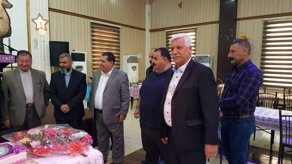 وتضمنت وفود المهنئين وفد اتحاد الطلبة والشبيبة الكلدواشوري فرع كركوك واعضاء الهيئة الادارية للنادي الاشوري الرياضي وجمع غفير من ابناء شعبنا الكلداني السرياني الاشوري.