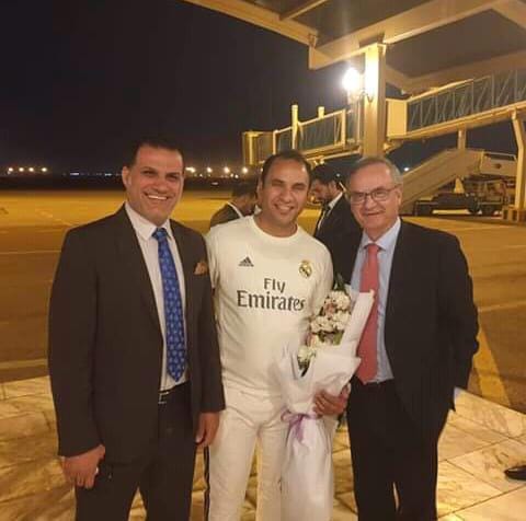 وبالفعل تم تحديد موعد الزيارة، ليصل الوفد مساء اليوم الاربعاء، الى مطار بغداد الدولي، حيث كان في استقباله، ممثل عن مكتب رئيس الوزراء والسفير الاسباني في العراق والنجم الدولي السابق نعيم صدام.