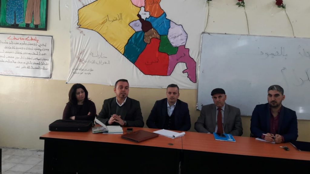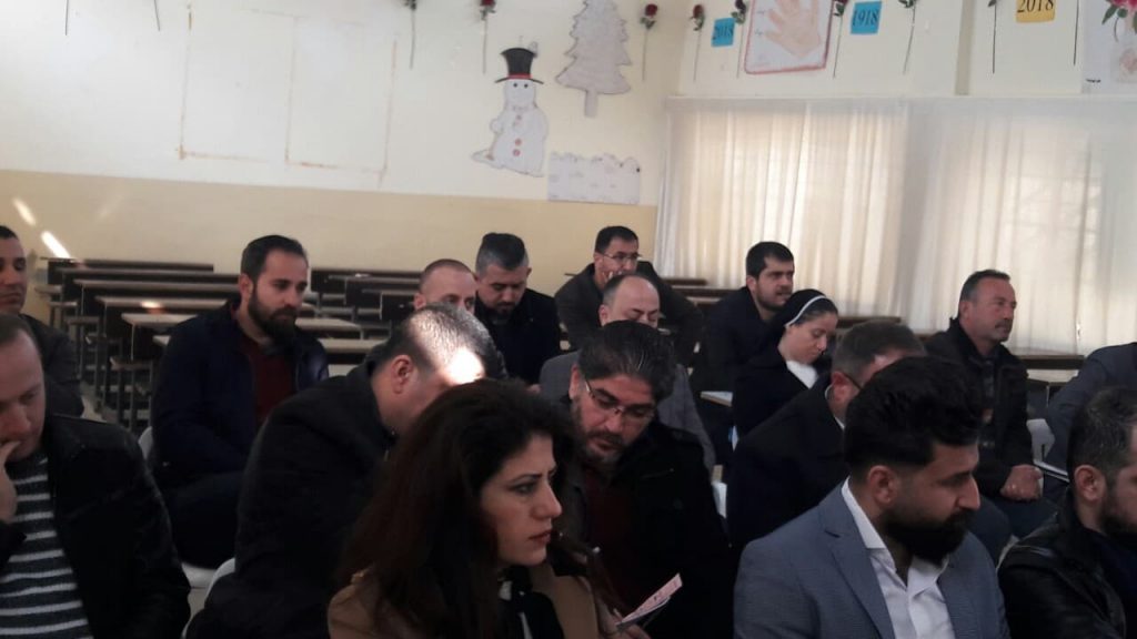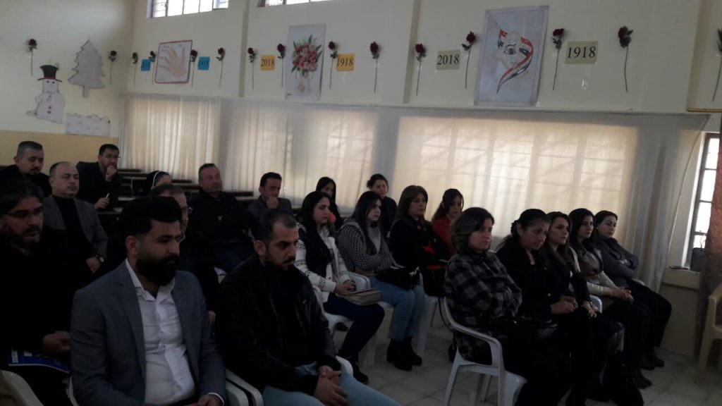 ضمن الخطة السنوية للمديرية العامة للدراسة السريانية , عقد قسم الدراسة السريانية في تربية نينوى، لقاءا تربويا للكوادر التدريسية والتعليمية لمادتي التربية الدينية المسيحية واللغة السريانية، وذلك يوم الثلاثاء الموافق 19 شباط 2019 في مدرسة القوش الأولى للبنين في بلدة القوش، بحضور السيد سمير يوخنا مدير قسم الدراسة السريانية، والسيدة تغريد ضياء متي مديرة شعبة الامتحانات في تربية تلكيف، والسيد زيد غريب انطوان مدير شعبة الدراسة السريانية في تربية تلكيف، والسيد جلال اسطيفو مشرف التربية الدينية المسيحية، والسيد جاك جرجيس مشرف اللغة السريانية.