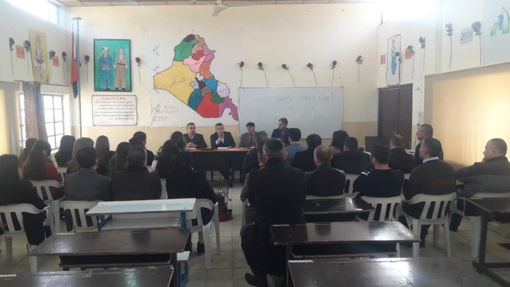 كما تم خلال القاء الاستماع للكوادر التدريسية والتعليمية وعن اهم المعوقات التي تواجههم من ناحية الكتب المنهجية وعدد الحصص الاسبوعية المقررة والية توزيع الكتب المنهجية وسد الشواغر في بعض المدارس وتفاصيل الخطة اليومية والسنوية للكوادر.