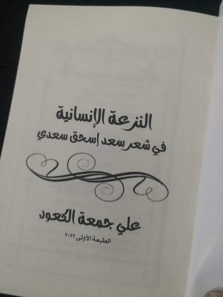 صدر عن دار ديوان العرب للنشر والتوزيع كتاب بعنوان (النزعة الانسانية في شعر سعد اسحق سعدي). للشاعر السوري علي جمعة الكعـود كتاب.