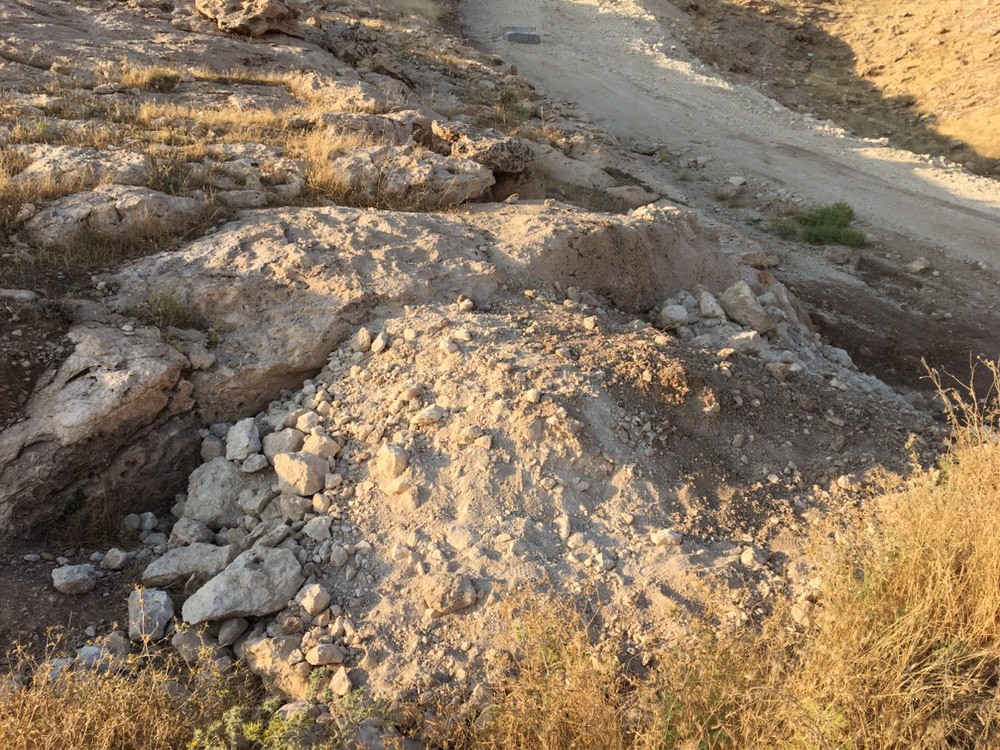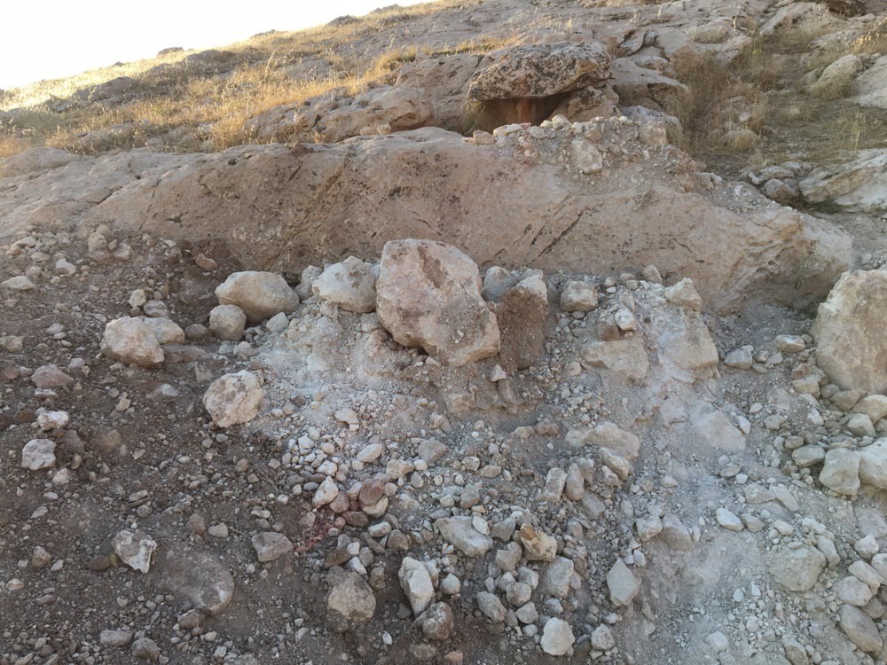 كما يقول مصدرنا بان هنالك اعمال مشروع ماء في المنطقة، وقد تم حفر شارع بجانب المنحوتة على بعد مسافة أقل من متر واحد، وقد تكون هناك آثار أخرى قد دمرت خلال عملية حفر الشارع قرب الموقع الأثري وعلى السلطات المحلية ايقاف الحفر لحين فحصها من قبل دائرة الاثار وانقاذ المنحوتات ان وجدت.