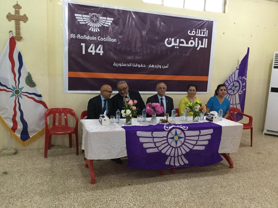 كما التقى وفد الائتلاف بابناء شعبنا في منطقة نهلة وذلك في ندوة للتعريف بالائتلاف شارك فيها ابناء شعبنا من رباتكي، ميروكي، بلنمد، هيزاني، زولي، خليلاني و كشكاوا. وتحدث النائب يونادم كنا عن الاوضاع في العراق والانتخابات المقبلة واهمية المشاركة بهدف التغيير، كما وداخل السادة عمانوئيل خوشابا وشمعون شليمون وفيرجين حنا زرا ومنى سرحان صندو، مرشحي ائتلاف الرافدين، مؤكدين على اهمية المشاركة وشارحين اهداف الائتلاف، وفي النهاية الاجابة على اسئلة الحضور.