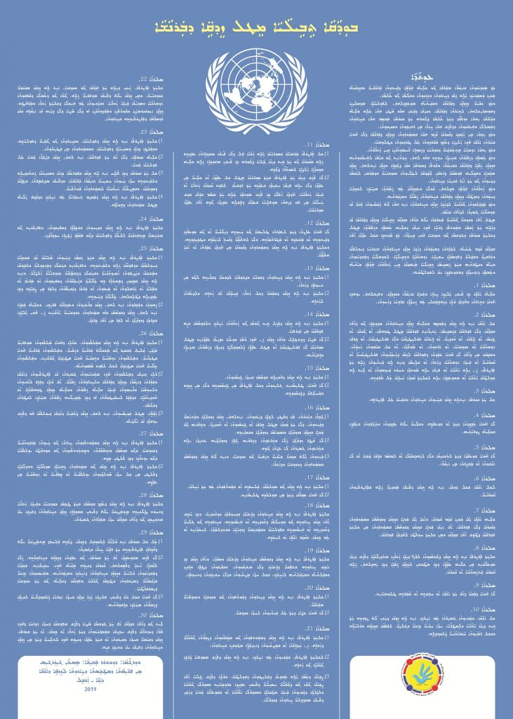ضمن سلسة نشاطاتها الثقافية، وبدعم من منظمة كابني، قامت منظمة خيروتا لحقوق الإنسان بترجمة وطبع اللائحة العالمية لحقوق الإنسان إلى اللغة السريانية الأم. وقام بأعمال الترجمة والتنضيد الأب الدكتور سمعان كيوركيس داود، وتم تصميمها وطبعها بشكل أنيق بحجمين، بوستر 48*58 سم، إضافة إلى بروشور 33*24سم.
