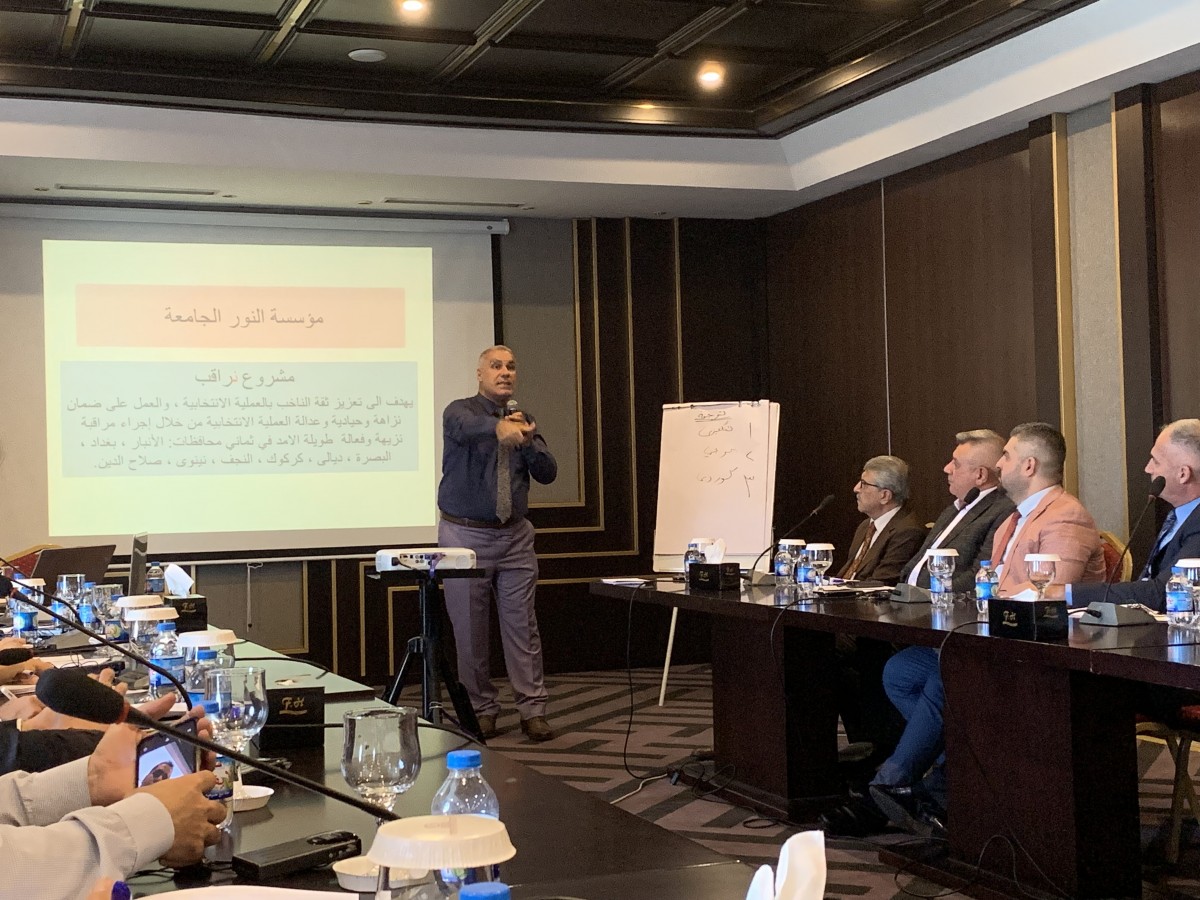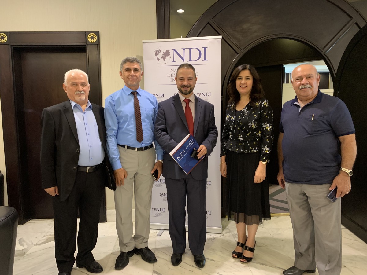 نظم المعهد الديمقراطي الوطني NDI  جلسة حوارية متعددة الاحزاب تركزت حول موضوع نزاهة واخلاقيات الحملات الانتخابية .. عقدت الجلسة يوم 16/9/2019 على قاعة فندق اربيل الدولي، وحضرها ممثلين عن المفوضية العليا المستقلة للانتخابات ومؤسسة النور الجامعة ومجموعات من اعضاء وكوادر الاحزاب الوطنية العاملة في كل من محافظات نينوى ، كركوك ، صلاح الدين.. اضافة الى مدراء المكاتب الانتخابية للاحزاب ، حيث مثل الحركة الديمقراطية الاشورية في الجلسة السيدة حنان اويشا عضو القيادة مديرة مكتب الانتخابات والسادة ظافر سالم ججو عضو فرع بخديدا وطلال فكتورعضو فرع كركوك واندريوس نيسان عضو فرع سنحاريب ..