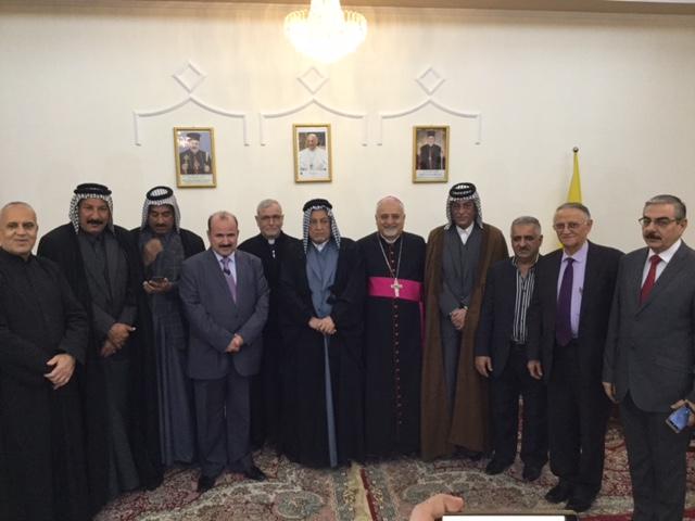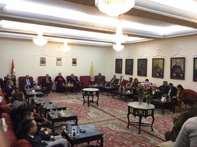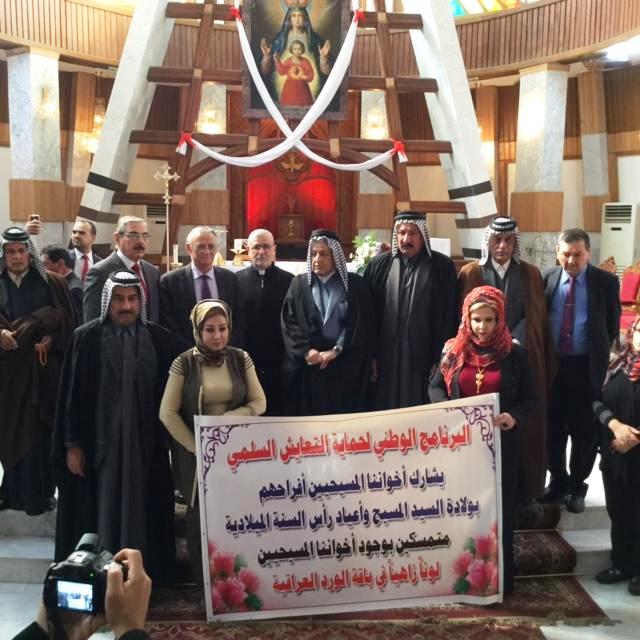 بمبادرة من النائب الشيخ عبود العيساوي وبالتنسيق مع النائب يونادم كنا، زار وفد كبير يوم الثلاثاء ٢٦ / ١٢ كنيسة الشهداء (سيدة النجاة) ومطرانية السريان الكاثوليك في بغداد والبصرة، وضم الوفد نواب ومسؤولين من مختلف الانتماءات وشيوخ وناشطين من المجتمع المدني، واستقبل الوفد من قبل نيافة المطران يوسف عبا وعددا من اباء الكنيسة، وقدم الوفد الزائر التهاني لمناسبة اعياد الميلاد المجيدة ورأس السنة الميلادية، وعبر السادة النواب والمسؤولين عن مشاعرهم وتعاطفهم مع ابناء المكون المسيحي، وان زيارتهم هي بمثابة رد على الارهابيين المجرمين الذين نفذوا الجريمة النكراء بحق المؤمنين من المصلين الذين سقطوا شهداء ضحايا الارهاب والتكفيريين الموجهين لزرع الفتنة والفرقة بين الاشقاء الشركاء في الوطن والمصير، مؤكدين تعاضدهم ومناصرتهم واستنكارهم لممارسات الجماعات التكفيرية.