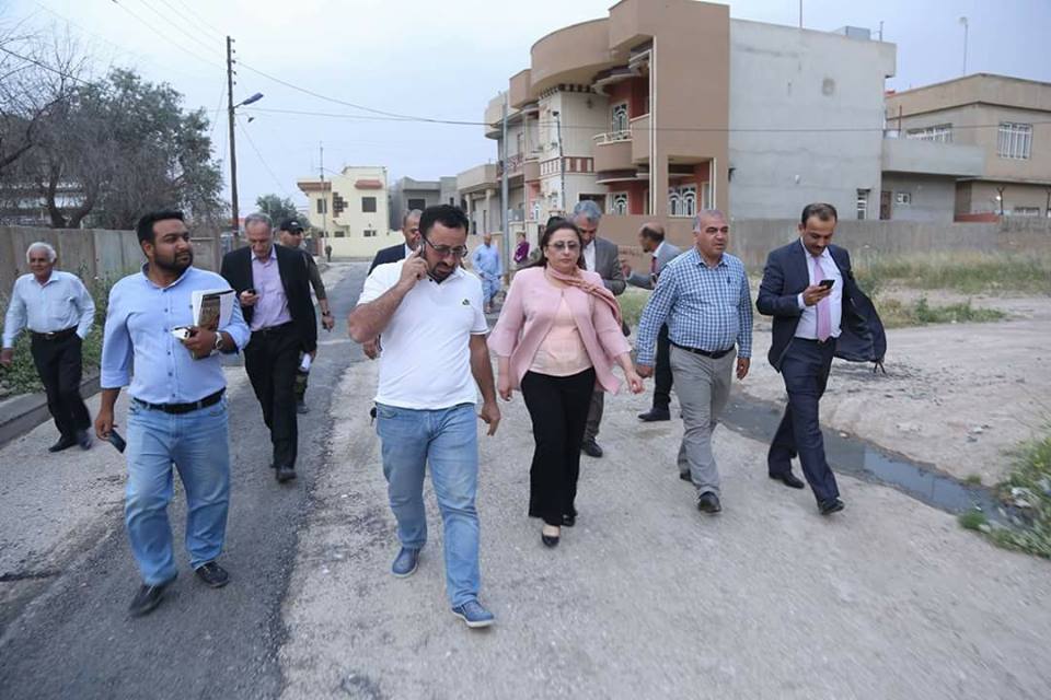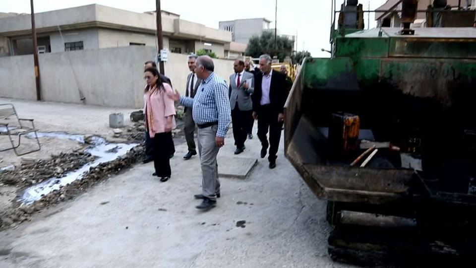زارت السيدة وزير الاعمار والاسكان والبلديات والاشغال العامة د. المهندسة آن نافع أوسي قضاء الحمدانية، برفقة السادة المدراء العامون لدوائر (المجاري ، الماء) التابعة للوزارة واطلعت على سير العمل في مشروع مجاريها.