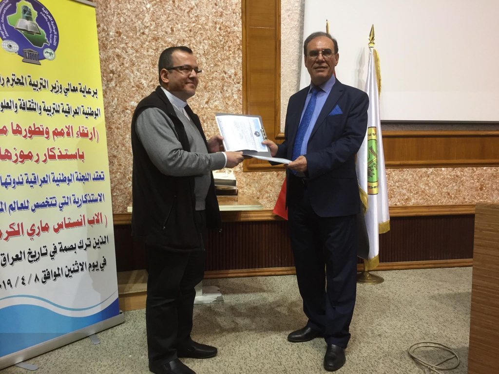 تحت شعار ( ارتقاء الامم وتطورها مرهون باستذكار رموزها ) وبرعاية معالي وزير التربية / رئيس اللجنة الوطنية العراقية للتربية والثقافة والعلوم، اقامت اللجنة الوطنية العراقية للتربية والثقافة والعلوم ندوتها السنوية الاستذكارية للعالم الموسوعي الاب انستاس ماري الكرملي وذلك اليوم الاثنين الموافق 8 نيسان 2019 وعلى قاعة احمد بن فضلان في مقر ديوان الوزارة في بغداد، بمشاركة وفد من المديرية العامة للدراسة السريانية ترأسه المدير العام السيد عماد سالم ججو وضم ايضا عدد من موظفي المديرية.