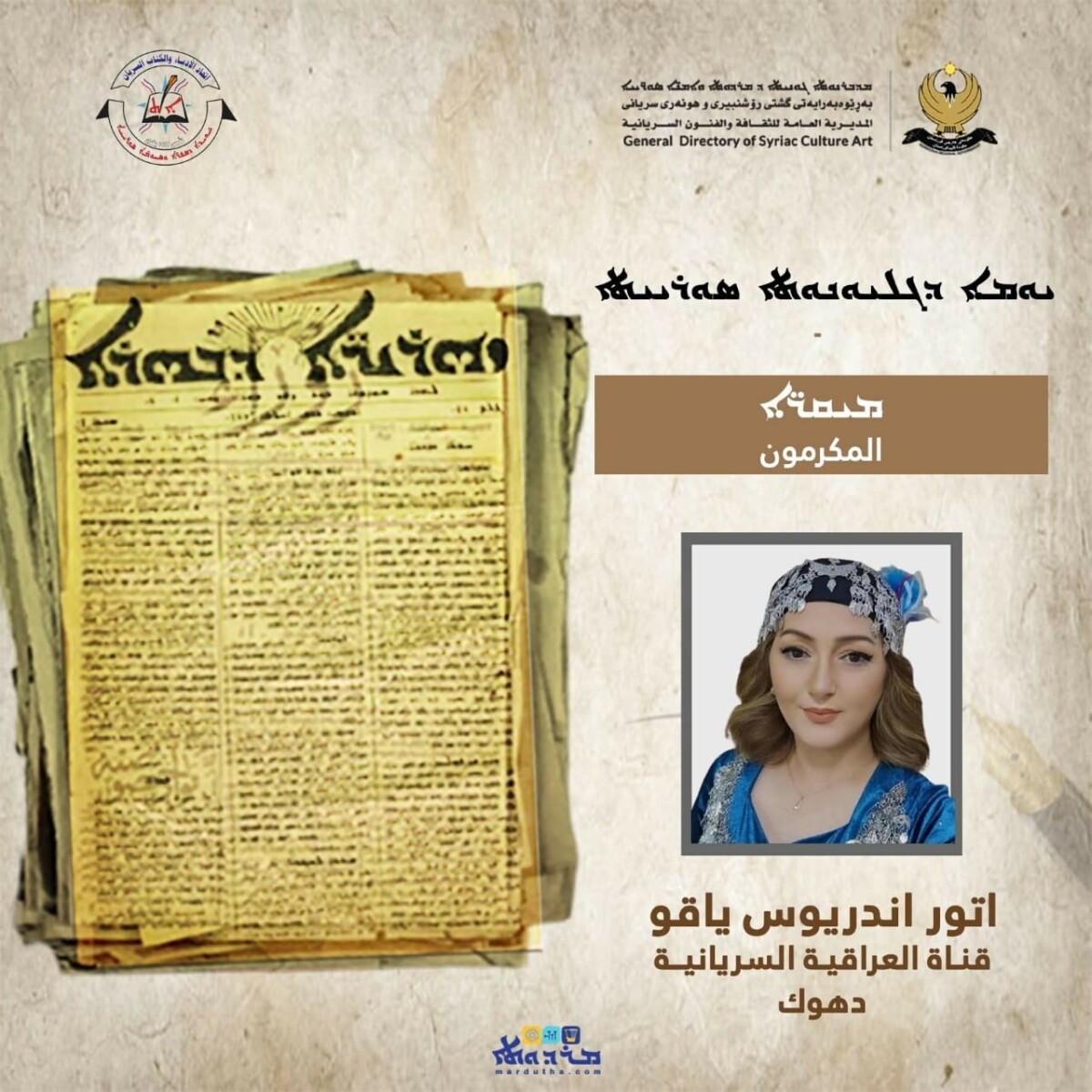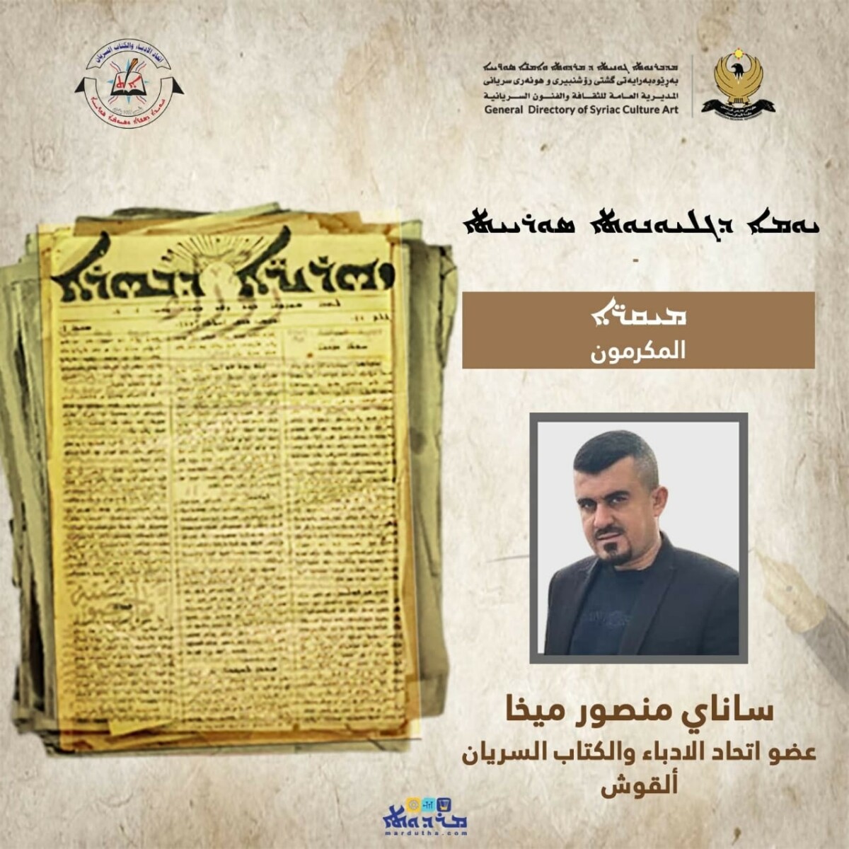 حضر وفد من حركتنا الديمقراطية الآشورية مساء السبت 1 تشرين الثاني 2025 الاحتفالية التي أقامتها المديرية العامة للثقافة والفنون السريانية واتحاد الأدباء والكتاب السريان.. على قاعة كلكامش في المركز الأكاديمي الاجتماعي في أربيل.. لمناسبة يوم الصحافة السريانية والذكرى 176 لصدور صحيفة “زهريرى دبهرا – أشعة النور”.. باكورة الصحف السريانية والتي صدر أول أعدادها في مثل هذا التاريخ من عام 1849 في مدينة أورمي بإيران.