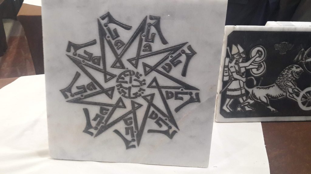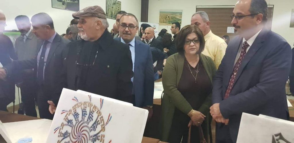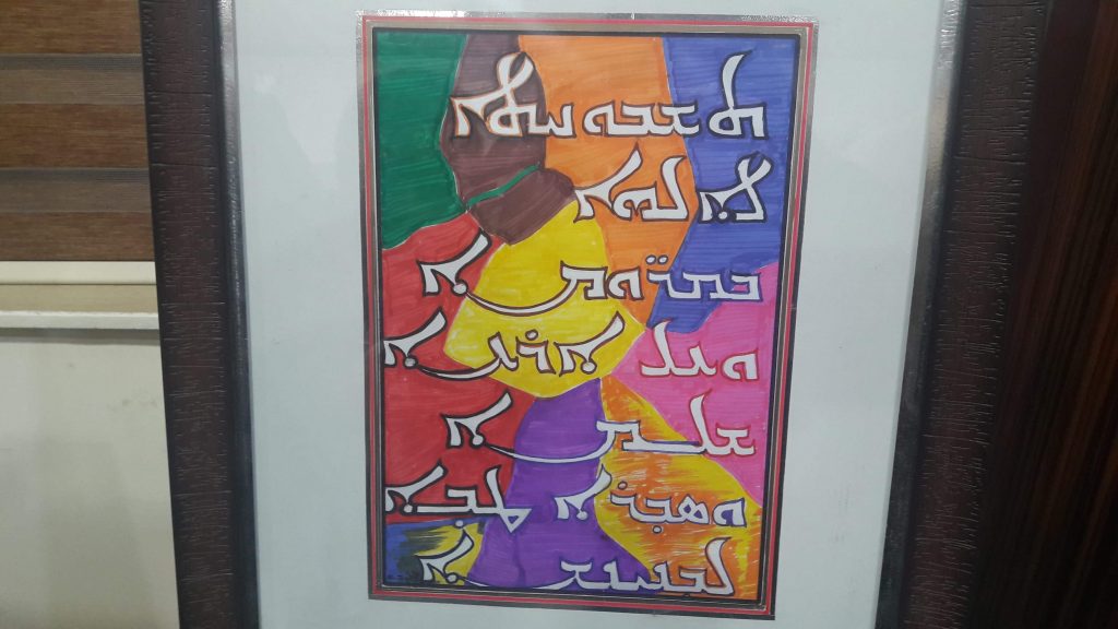 وفي ختام الجلسة الحوارية تم افتتاح المعرض الفني للخط السرياني والذي أقامه الفنان الن شموئيل والذي تضمن عرض العديد من اللوحات والاعمال الفنية للخط باللغة السريانية.
