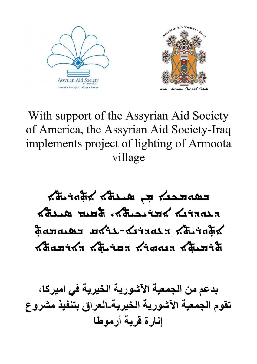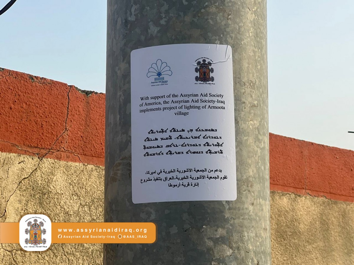 قامت الجمعية الاشورية الخيرية-العراق وبدعم من الجمعية الآشورية الخيرية في أمريكا بتجهيز ونصب (40) بلاجكتور بقرية أرموطا بمنطقة كويسنجق. نظرا لحاجة القرية لمثل هكذا خدمات.